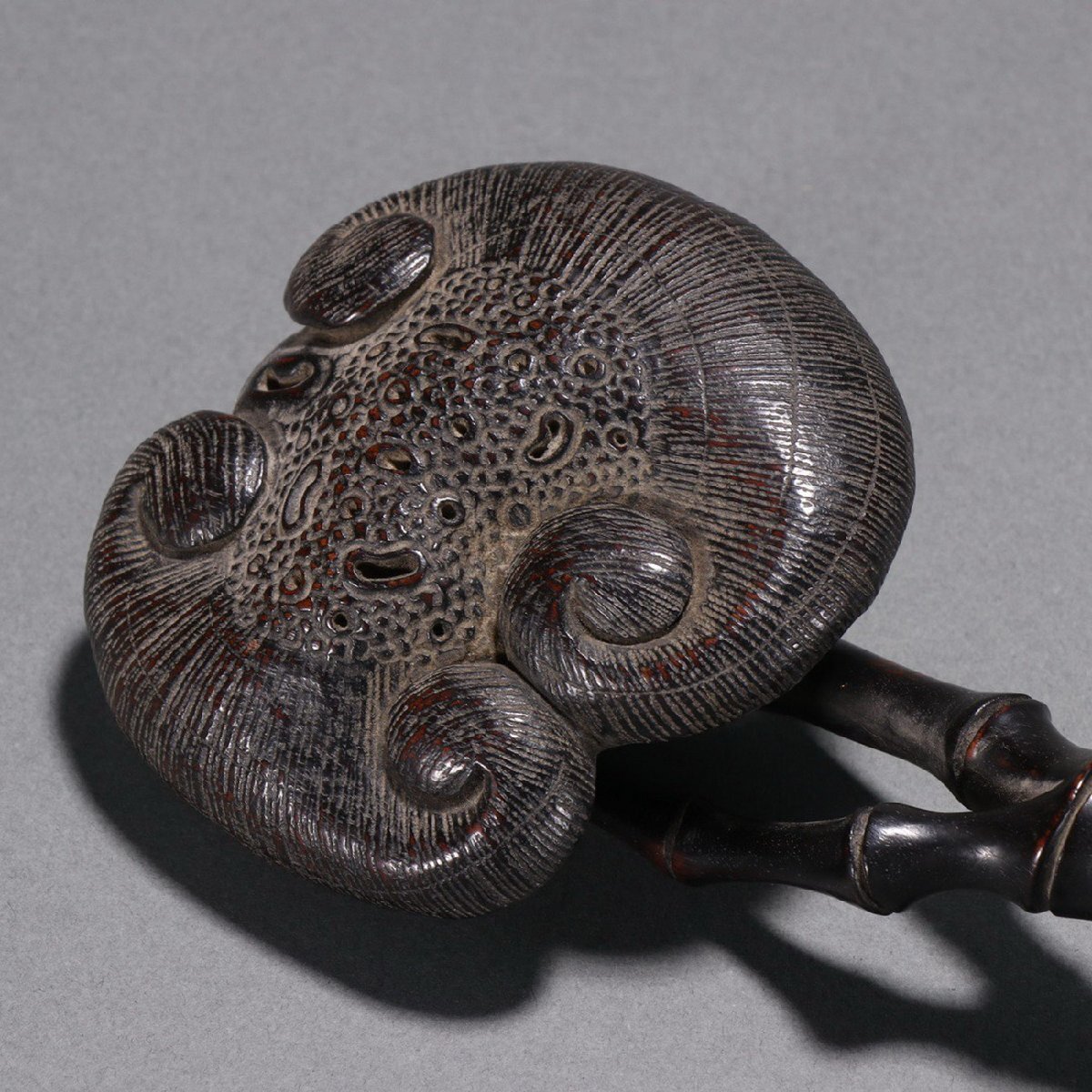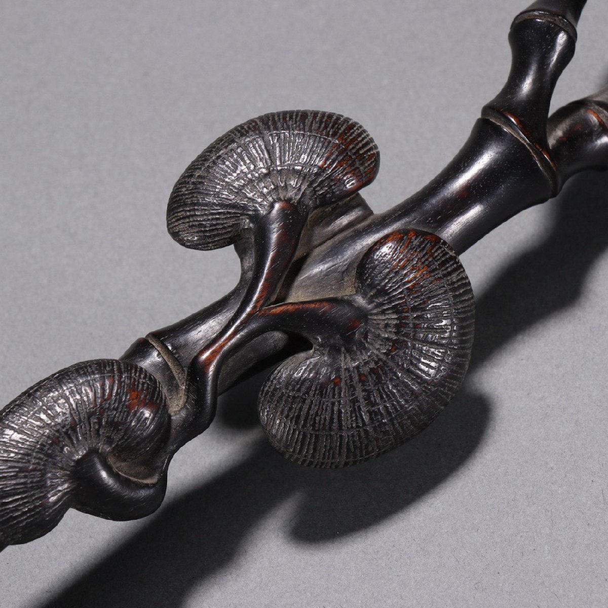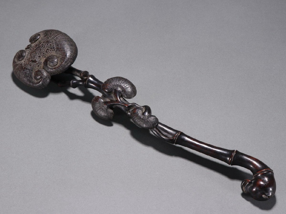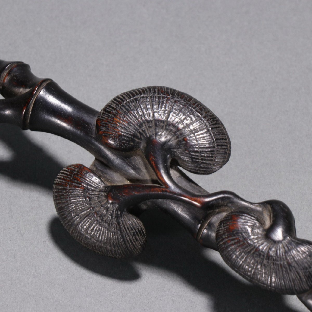 【清】某有名オークション購入 清時代 紫檀木 霊芝紋如意置物 材質保証 当時物 古置物 古擺件 古美術 時代コレクション7L9-OD5