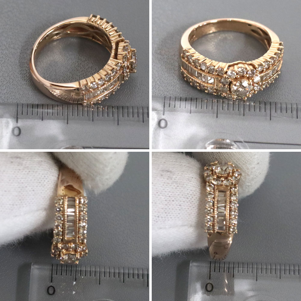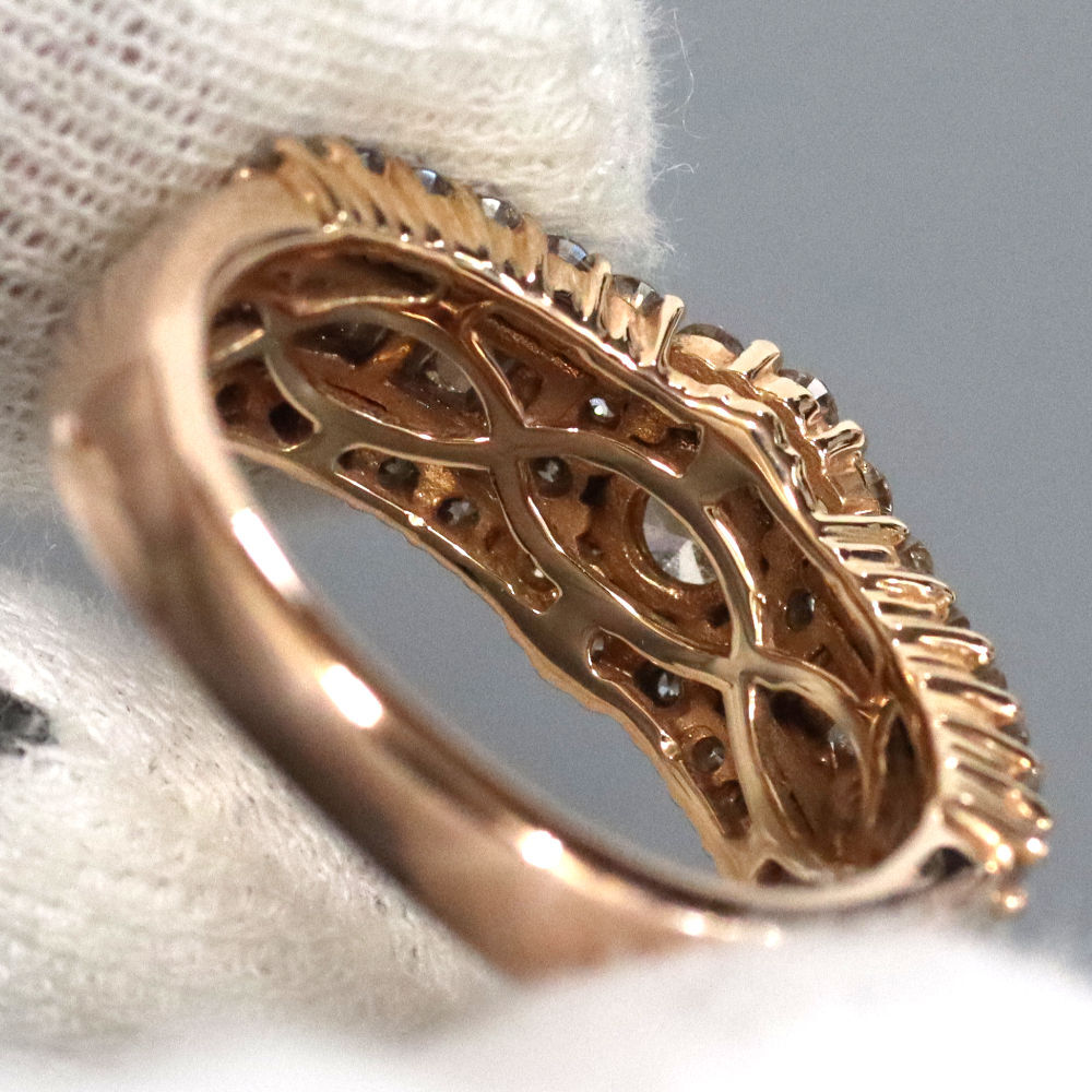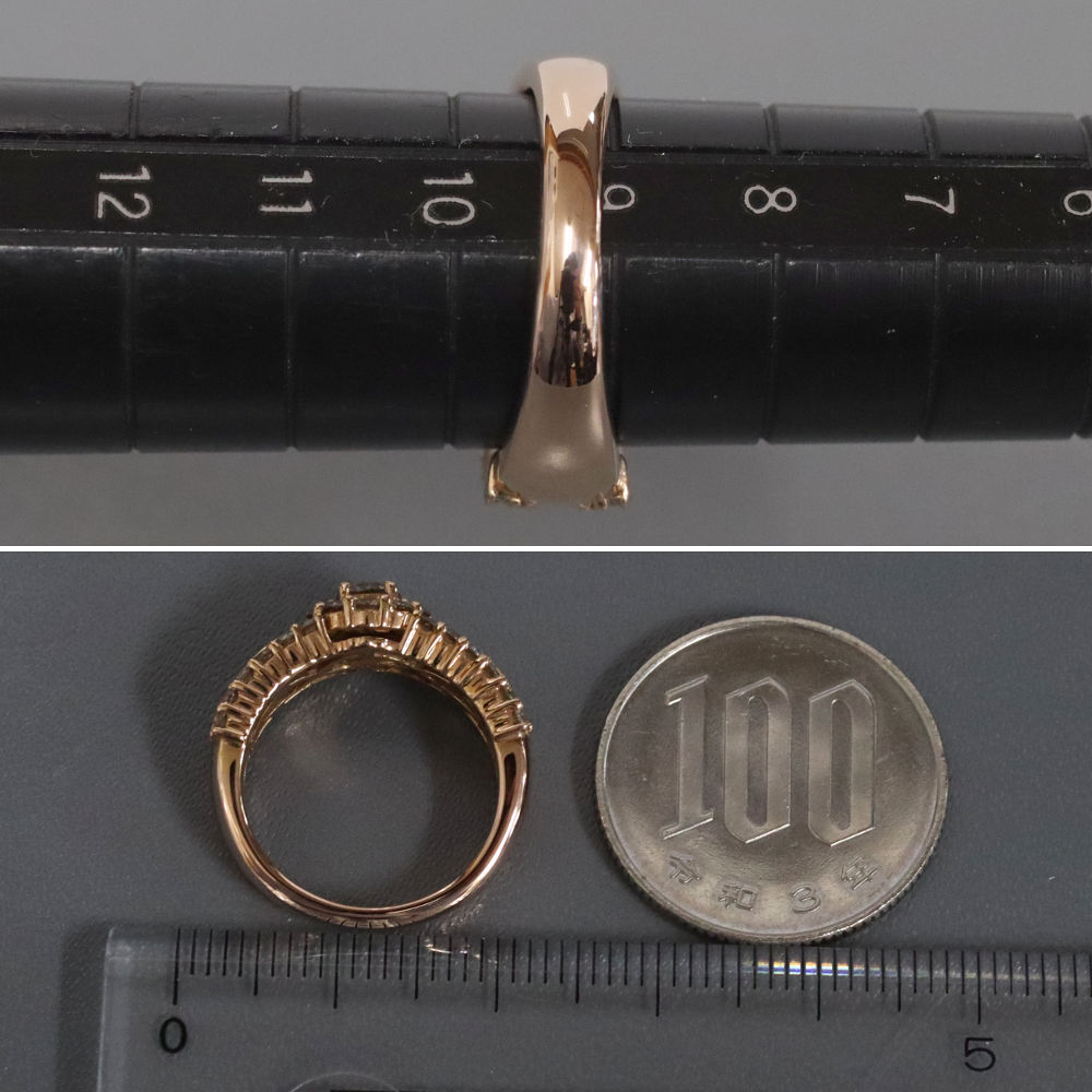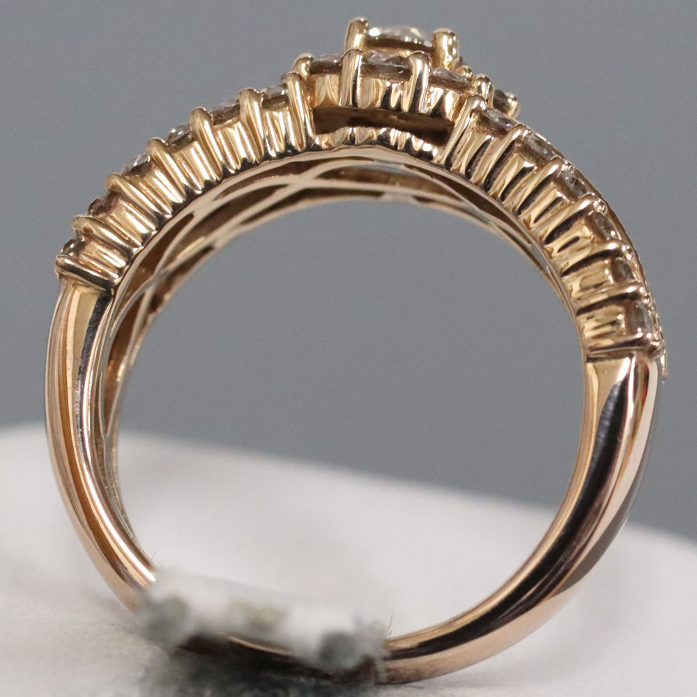| K18PGダイヤモンドリングの中古品です。 華やかにダイヤモンドがセットされております。 ダイヤモンドは、茶色味がかっており、インクルージョンはありますが、輝きがあります。 地金に小傷があります。
