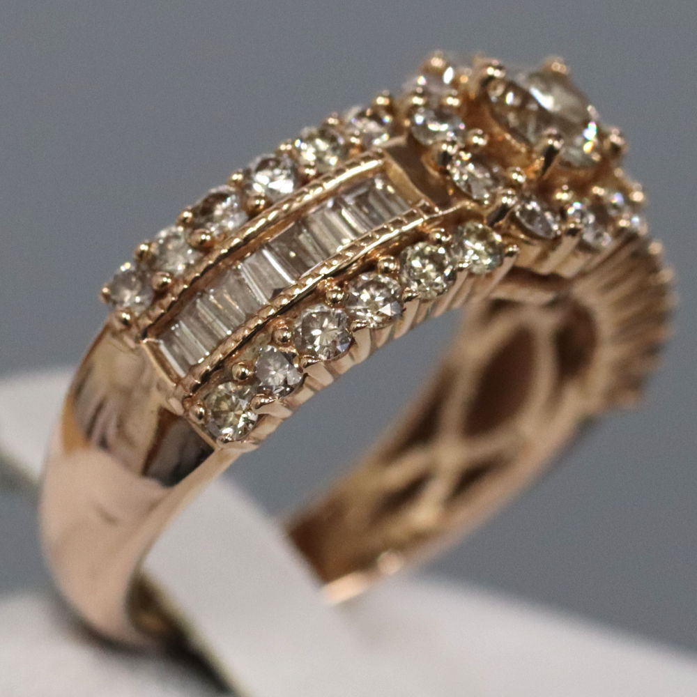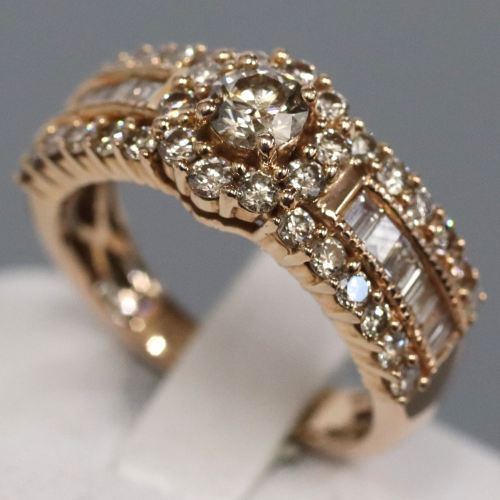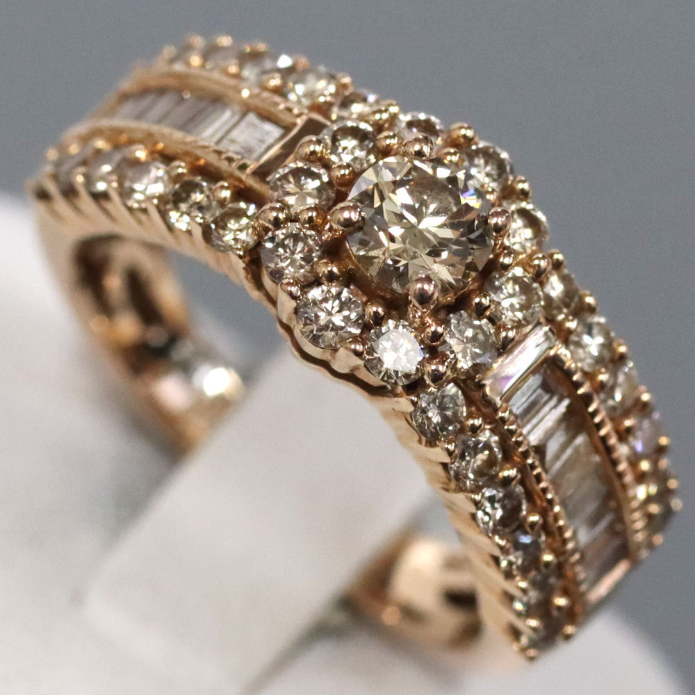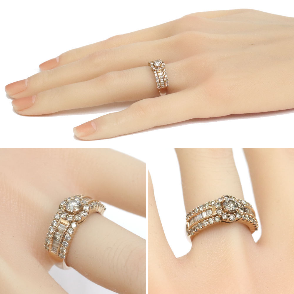| K18PGダイヤモンドリングの中古品です。 華やかにダイヤモンドがセットされております。 ダイヤモンドは、茶色味がかっており、インクルージョンはありますが、輝きがあります。 地金に小傷があります。