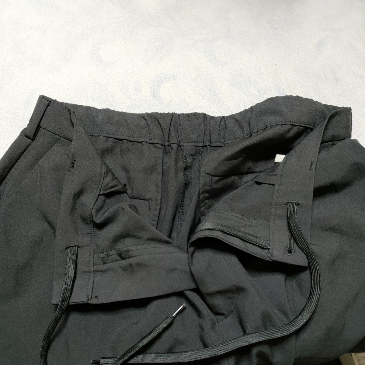 裾にかけて徐々に細くなるワイドテーパードシルエットのアンクルパンツ。