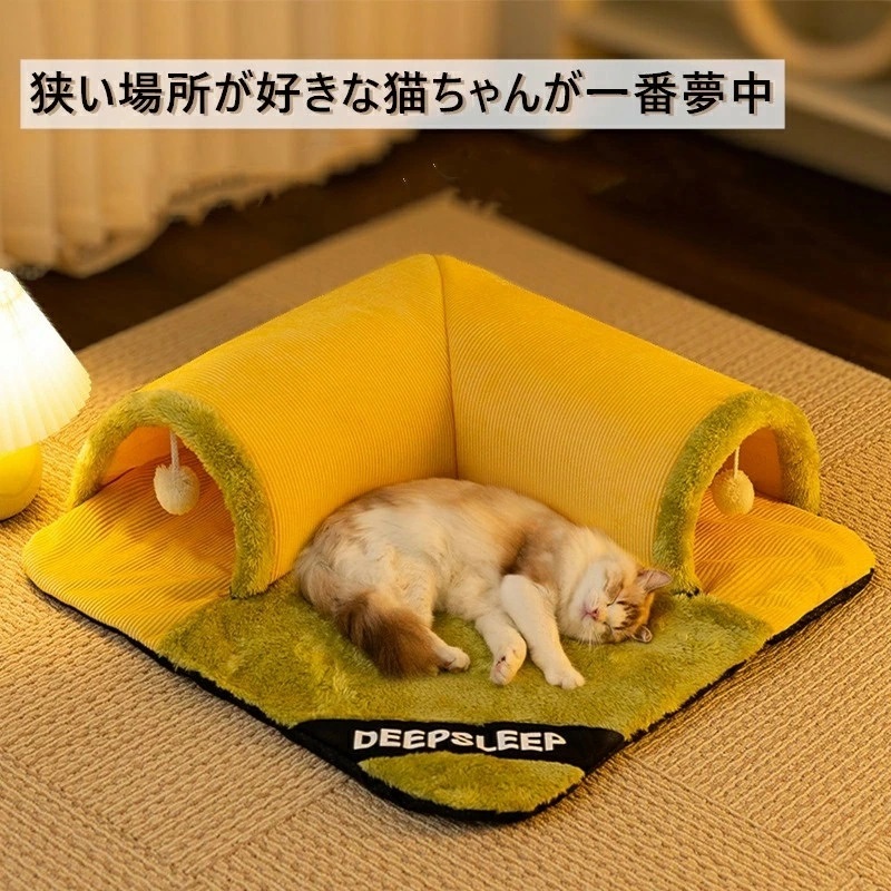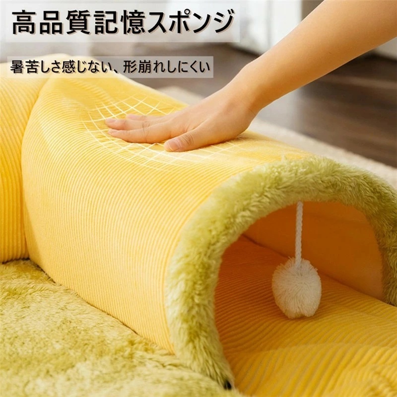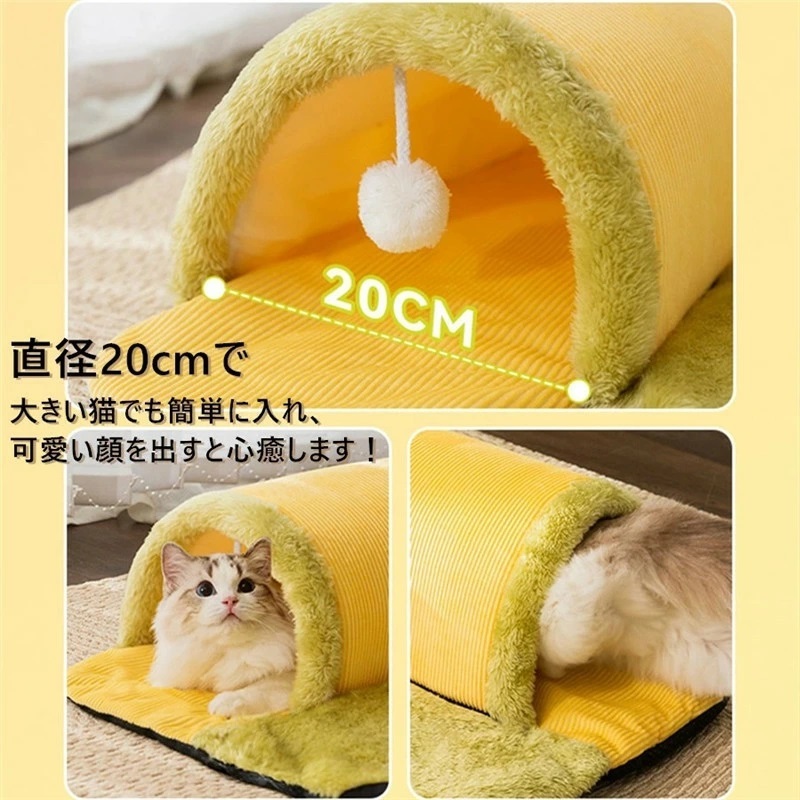 Y513-L 黄色 ペットベッド 冬 猫 ベッド ねこトンネル 冬 猫用おもちゃ ネコの寝袋 猫遊び ストレス発散 猫ハウス キャットトンネル ペットマット ポンポン付き S M L 運動不足対策 ペットハウス ペットベッド キャットハウス小型犬 かわいい オシャレ 2WAY