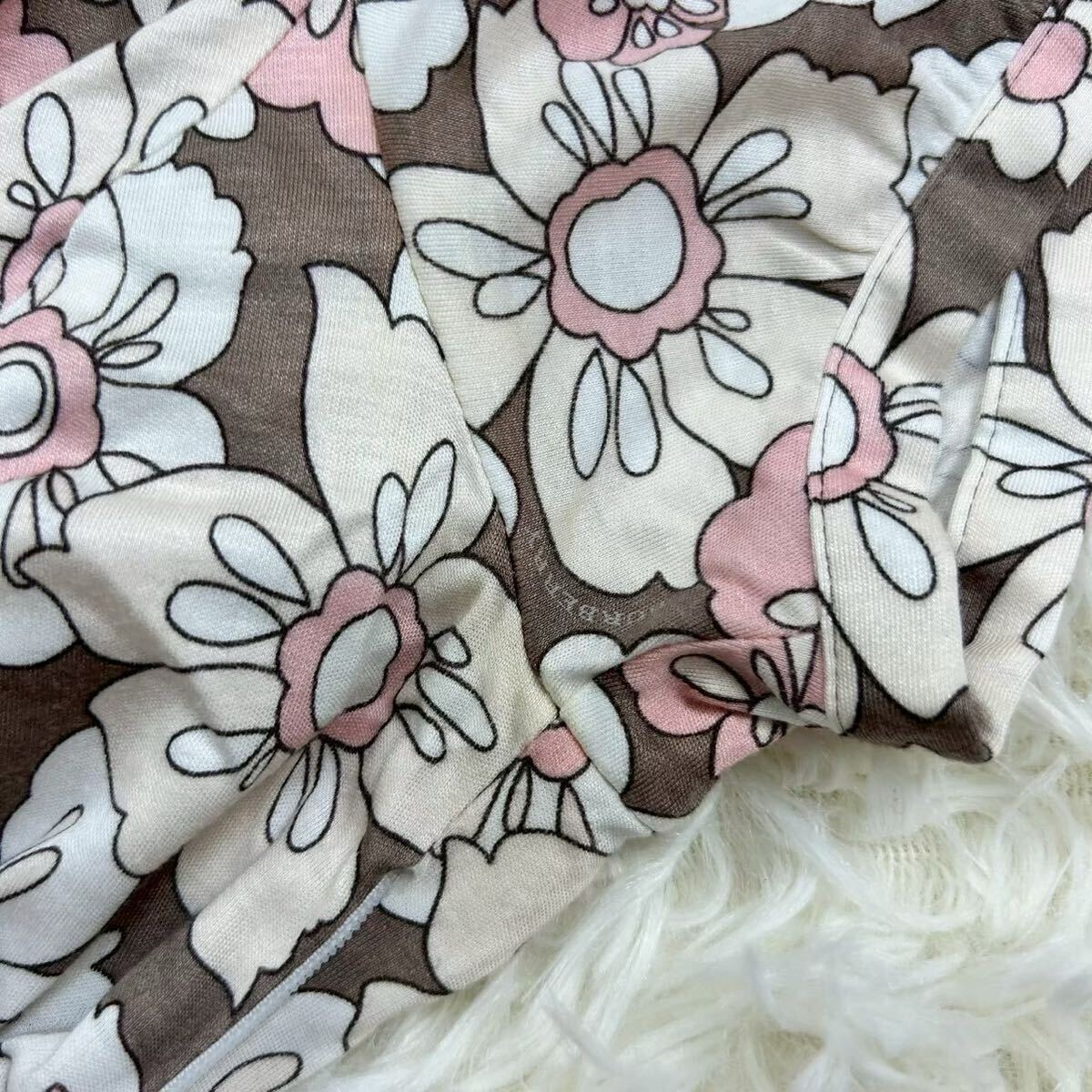 フェミニンな花柄プリントとレーヨン素材の軽やかさが魅力の一着です。