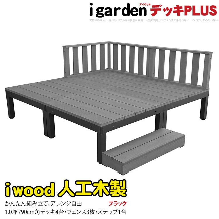 igarden アイウッドデッキ PLUS 8点セット(デッキ4・ローフェンス3・90ステップ1)1.0坪 ブラック 樹脂製 アルミ テラス 庭 10385-4d3f1sbk
