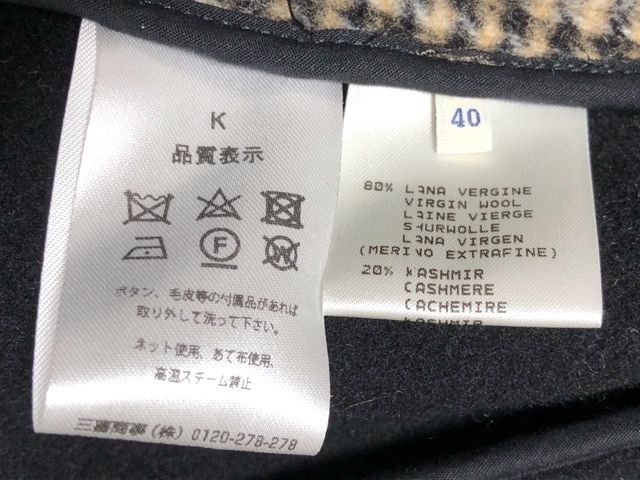 ☆二点落札で送料無料!2A6【極美品】ステファノモルタリ 高級 ウール×カシミヤ ダブルブレストコート グレンチェック 40 S-M レディース