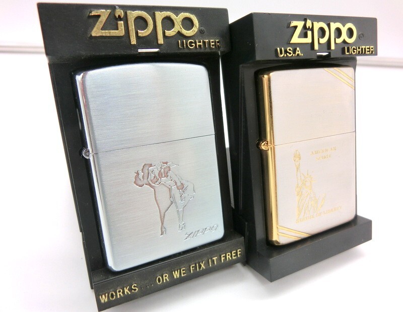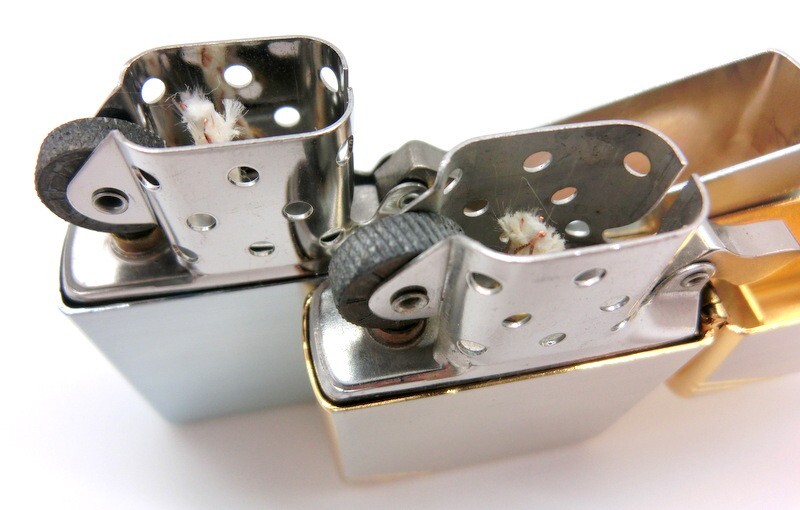 ゴールドの方はフリント装填されていませんが、火花の確認のために一時的に装填しました。 検品だけのためなので、本体には入ってません。(シルバーはおそらく装填されています) 未使用品、もしくはほぼ使用感のないものですが、保証はできかねますので、写真にてご確認くださいませ。