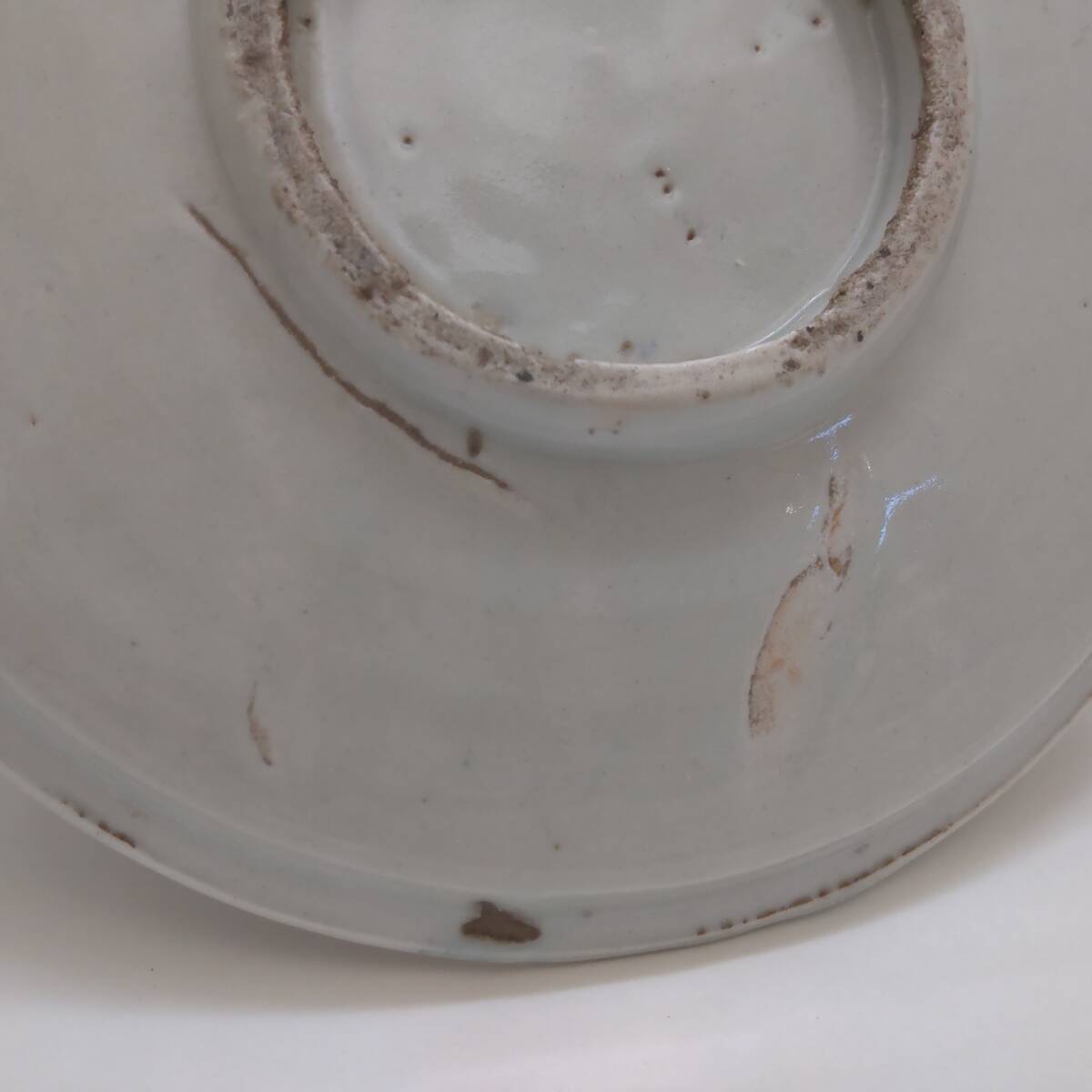直径約18.5cm 高さ約2cm 使用した際のスレキズが見られます。 水洗いした後の水が乾いたときの汚れのようなものも多少ありました。 |