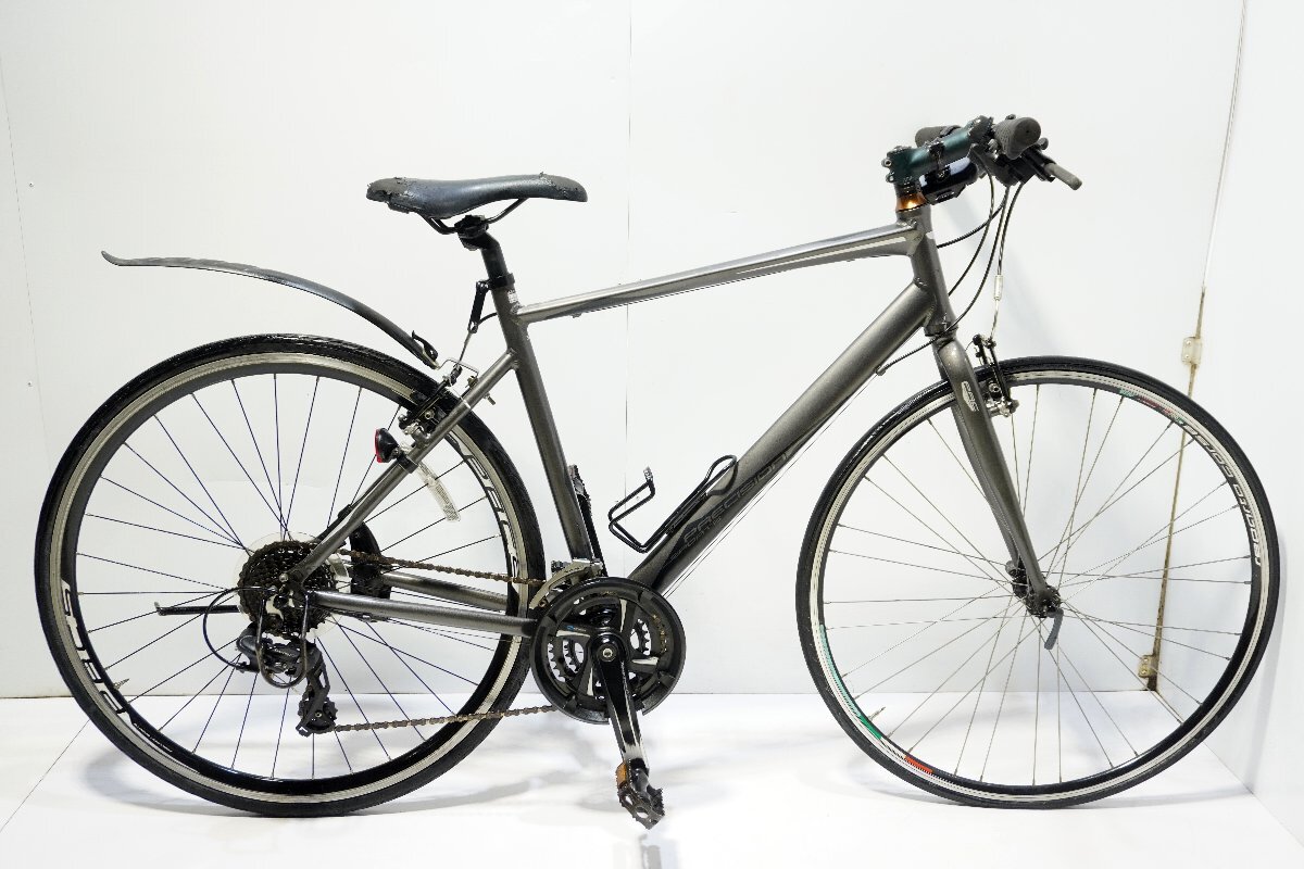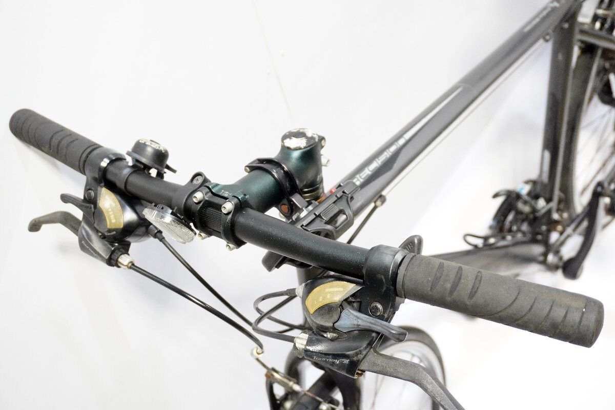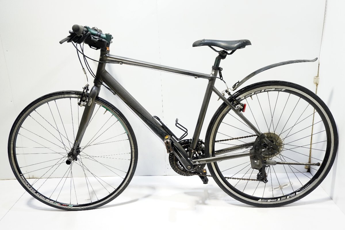 ■カテゴリー別のリンクはこちら■ →測定器・アマチュア無線 →工具・農業機械 →カメラ・映像機器 →オーディオ・楽器 →スポーツ・レジャー・自動車関連 →PC・周辺機器・ゲーム →ミシン・店舗用品・その他 ■商品説明■ ************************************************************************ ※サイズの実測は 測り方などが解らず素人寸法の為誤差があります。 ※芯から芯までのサイズを測っております。素人ですので、参考程度でお願いします。 ※予めご了承ください。 ※詳しいことはよくわかりませんので質問に答えられない場合がありますのでご理解ください。 ※当方知識が無く正確なカテゴリ、サイズが分かりません。 ※カテゴリ、カテゴリサイズにつきましては参考程度にお考え下さい。 ************************************************************************ ■ タイヤサイズ ■ 前:25-622(28×1.00-700×25C) 後:28-622(700×28C) ■ 全体サイズ ■ サイズ:約 170× 57× 99cm フレーム トップチューブ: 55㎝ ダウンチューブ: 65㎝ シートチューブ: 50㎝ ■ 動作・状態等 ■ ブレーキ: 前→OK 後→OK シフト: 前→3段 要調整 後→7段 要調整 シートポスト固着: 無し その他:前シフトに歪み?あり、チェーンが少し当たっています。 ************************************************************************ 当方、専門ではない為、実走など詳細部分までの動作確認は行っておりません。 点検・整備等、必要なお品ですので、ジャンク品として出品とさせていただきます。 見落としや不具合など、部品の欠落等がございましても保証致しかねます。 中古品ですので、擦り傷・汚れ・サビ・塗装剥がれなどが有ります。 状態については写真判断の程よろしくお願いいたします。 バッテリー等の消耗品が付属する場合、 どの程度消耗しているか不明ですので、保証は致しかねます。 発送の際は、タイヤなどを外した状態での梱包になります。 必要な方には、「販売証明書」をお付けいたしますのでお申し出ください。 その他の書類はございません。 ****************************************************** ノークレーム・ノーリターンでお願いいたします。 | ||||