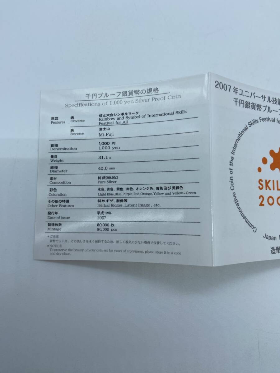 【24201】純銀 1000円銀貨 2007年 ユニバーサル技能五輪国際大会記念 平成19年 ケース付 量目31.1 千円銀貨幣 プルーフ貨幣 造幣局 |