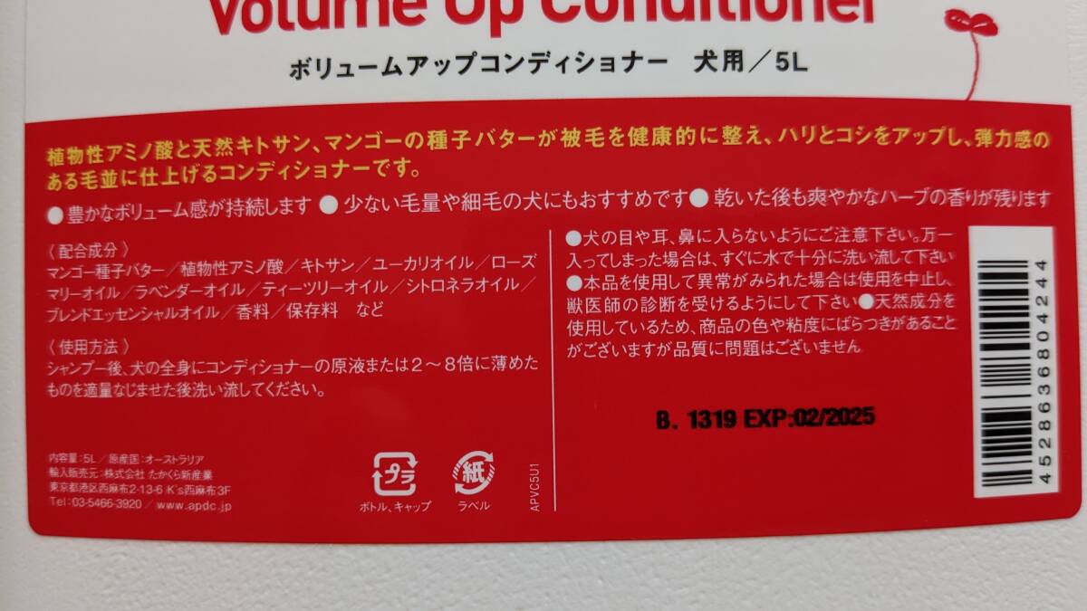| ティーツリーシャンプー200ml とティーツリーボリュームアップコンディショナー200ml のセットです。ボリュームアップコンディショナーは通常のコンディショナーと比較すると粘性が高く、ふんわりと仕上がります。 出品物は画像2枚目となります。密封パッケージでのお届けです。 ※原液です。希釈等は一切しておりません。 ※良く撹拌してから小分けしています。 有効成分が沈殿するため、ご家庭で使用の際にも良く振ってからのご使用が良いかと思います。 ■シャンプー200ml(使用期限2026年6月) ■ボリュームアップコンディショナー200ml(使用期限2026年8月) ※シャンプーのみ、コンディショナーのみでもOKです。 計量の若干の誤差はご容赦下さい。 計量はgで行っていますがmlとほぼ同じです。 画像2枚目がお届けするお品です。 ■ティーツリーシャンプー ・天然アロエベラが優しく皮膚を保湿し、フケを防止します。 ・被毛をふんわりしなやか、するりとなめらかな仕上がりに。泡切れ、水切れがよく、使いやすさも抜群。 ・上質なエッセンシャルオイルの爽やかな香りも人気の秘密です。 ■ティーツリーコンディショナー ・手触りをしっとりさせたい時に ・長毛の犬種やハネが気になるワンちゃんに ・ほどよいしっとり感と、ツヤのある仕上がりにこだわったコンディショナーです。 ・しっとり・サラサラ感触に仕上がります ・乾燥後も爽やかなティーツリーの香りが持続します。 |