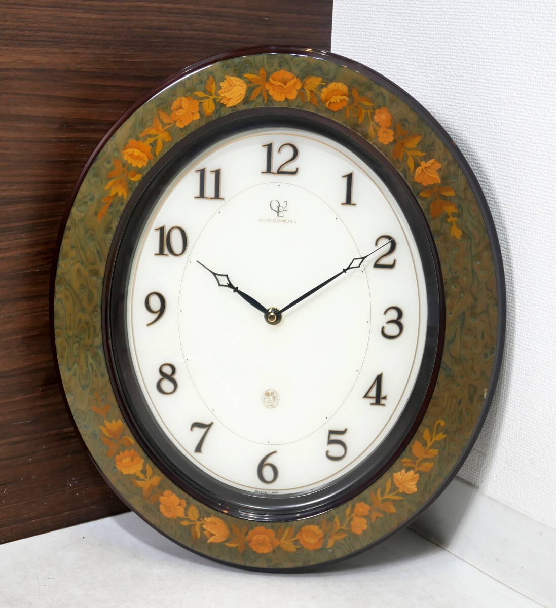 ▲(R706-H103) ジャンク品 QUEEN ELIZABETH2 クイーンエリザベス 4KG935QE05 花柄 リズム時計 掛け時計