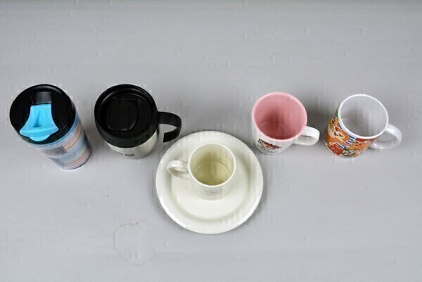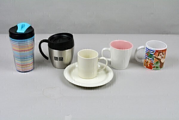 ★ノベルティグッズいろいろ・ミスド・ユニクロ・郵便局等・タンブラー・マグカップ・カップ&ソーサー等・5点・未使用・家庭内長期保管品