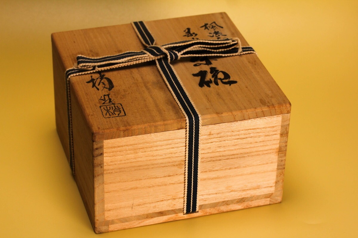 稀に他の作品名・作家名が書き付けられた木箱をお付けしております。誤認防止のため箱書き部分の画像を掲載しない場合もございます。