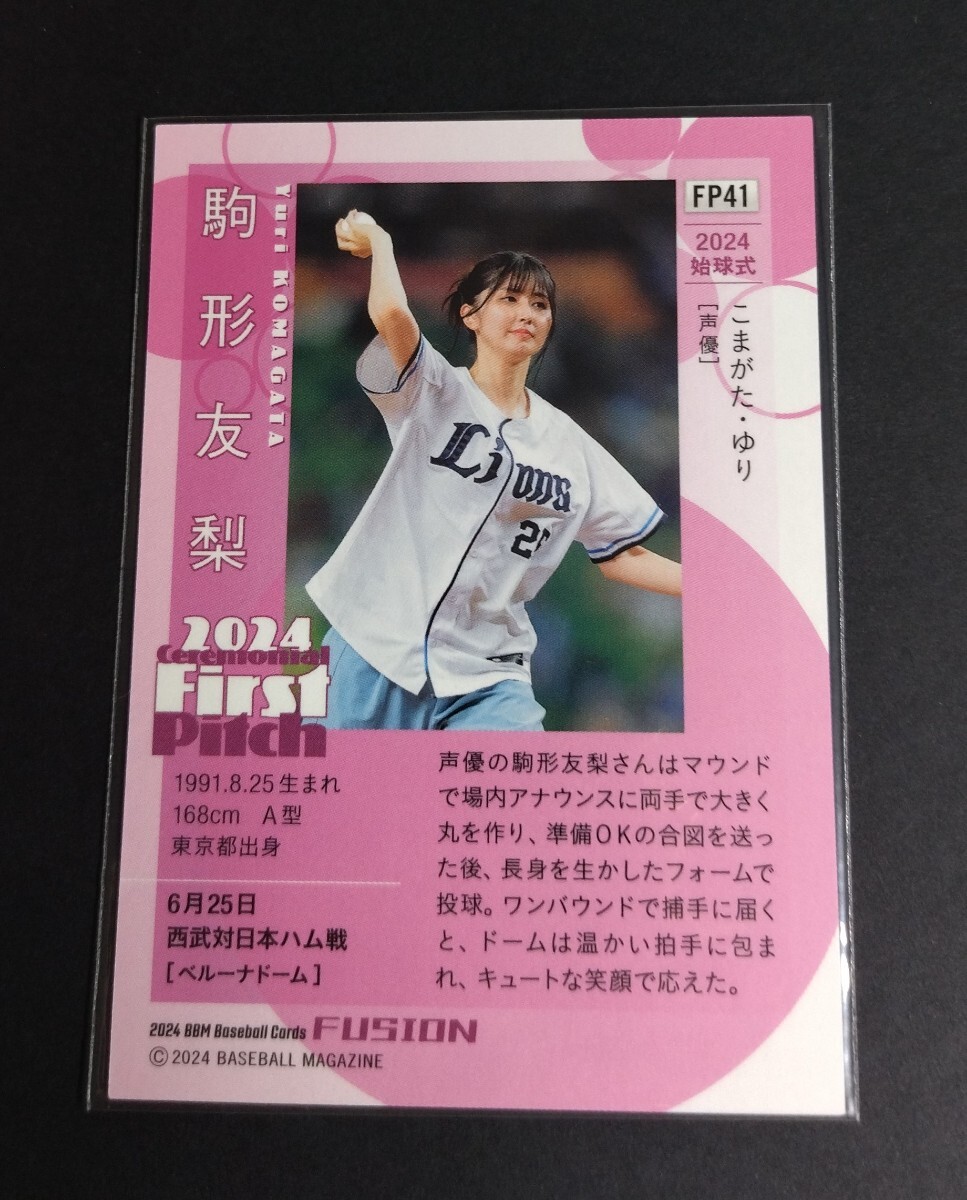 2024年BBM FUSION 駒形友梨(声優)First Pitch!始球式カード。西武vs日本ハム戦ベルーナドーム。No,FP41。