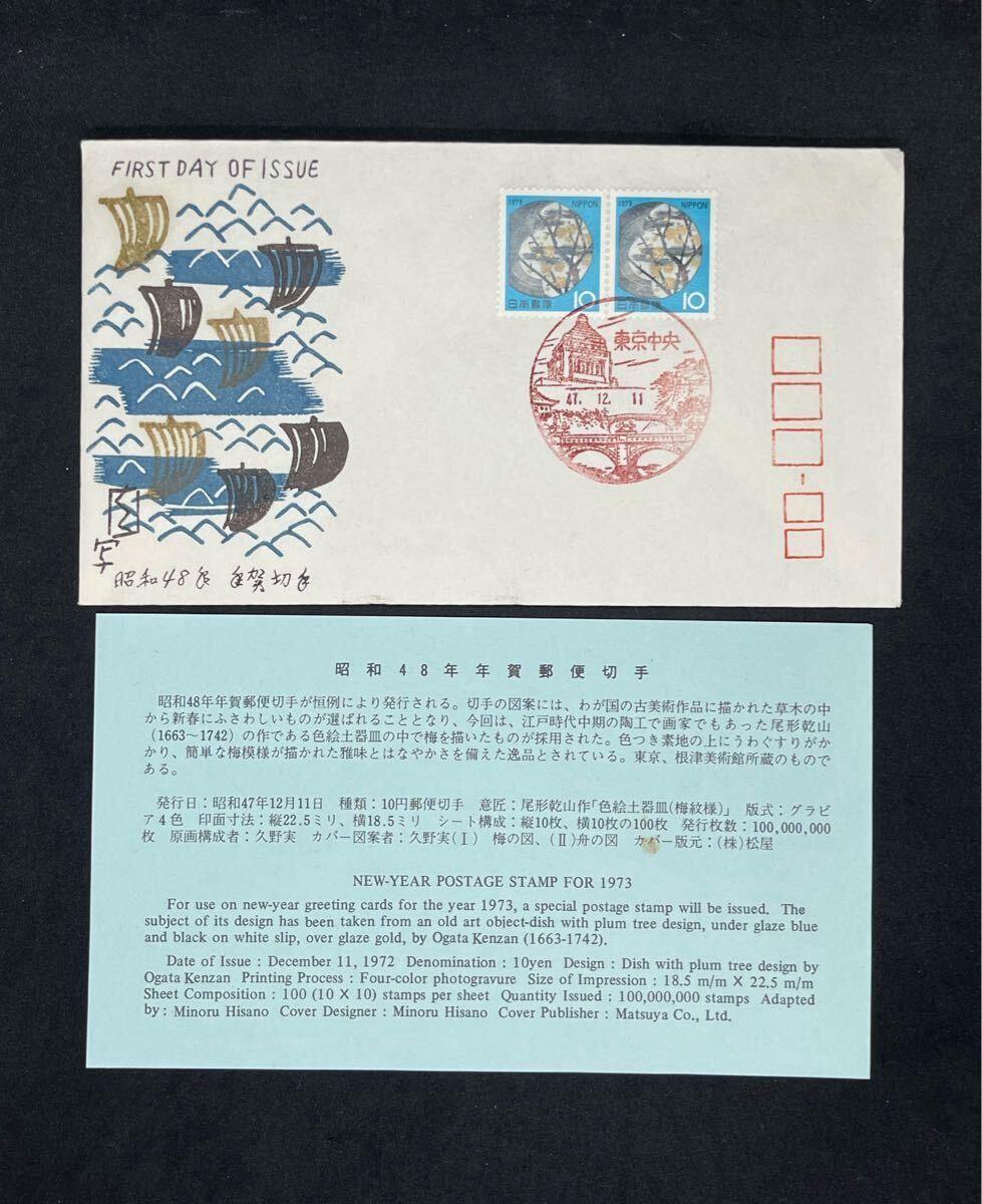 昭和48年 年賀切手 「梅」 10円 2枚貼