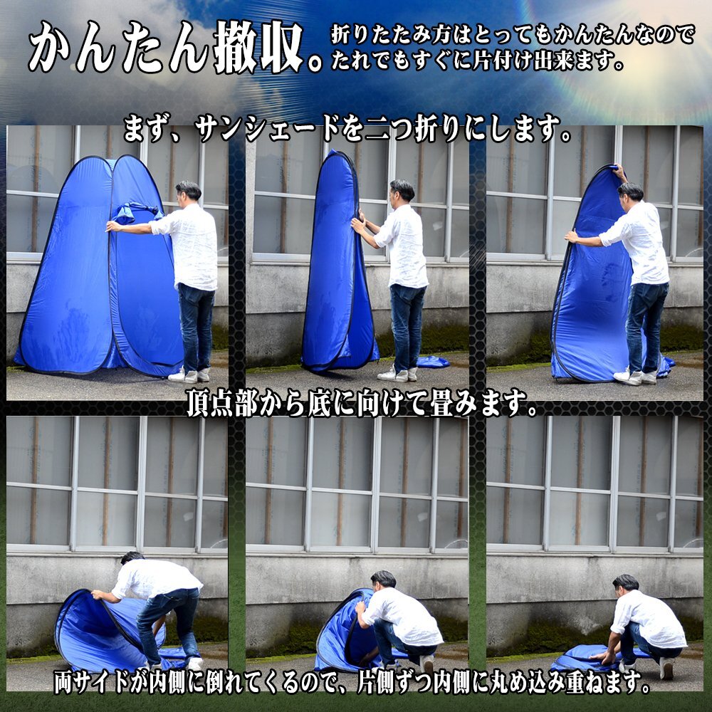 海水浴やアウトドアでの着替えに! 女性やお子様でも1人で簡単に設営できる キャンプや海や川などに行ったときに、車内での着替えは狭くて辛い! 中はゆったり広々で大人でも楽に着替えができます! 災害時には中に簡易トイレなどに設置としてトイレとして使うこともできます!