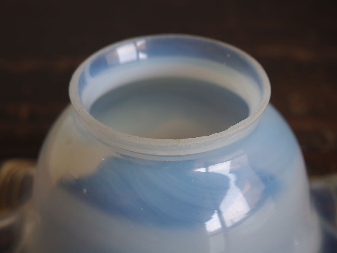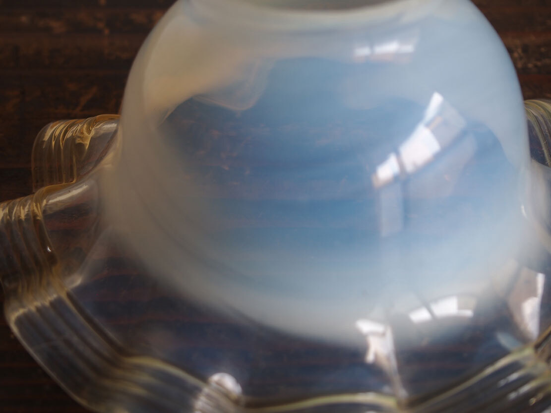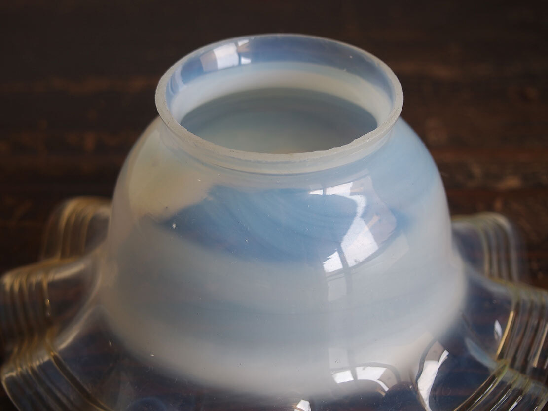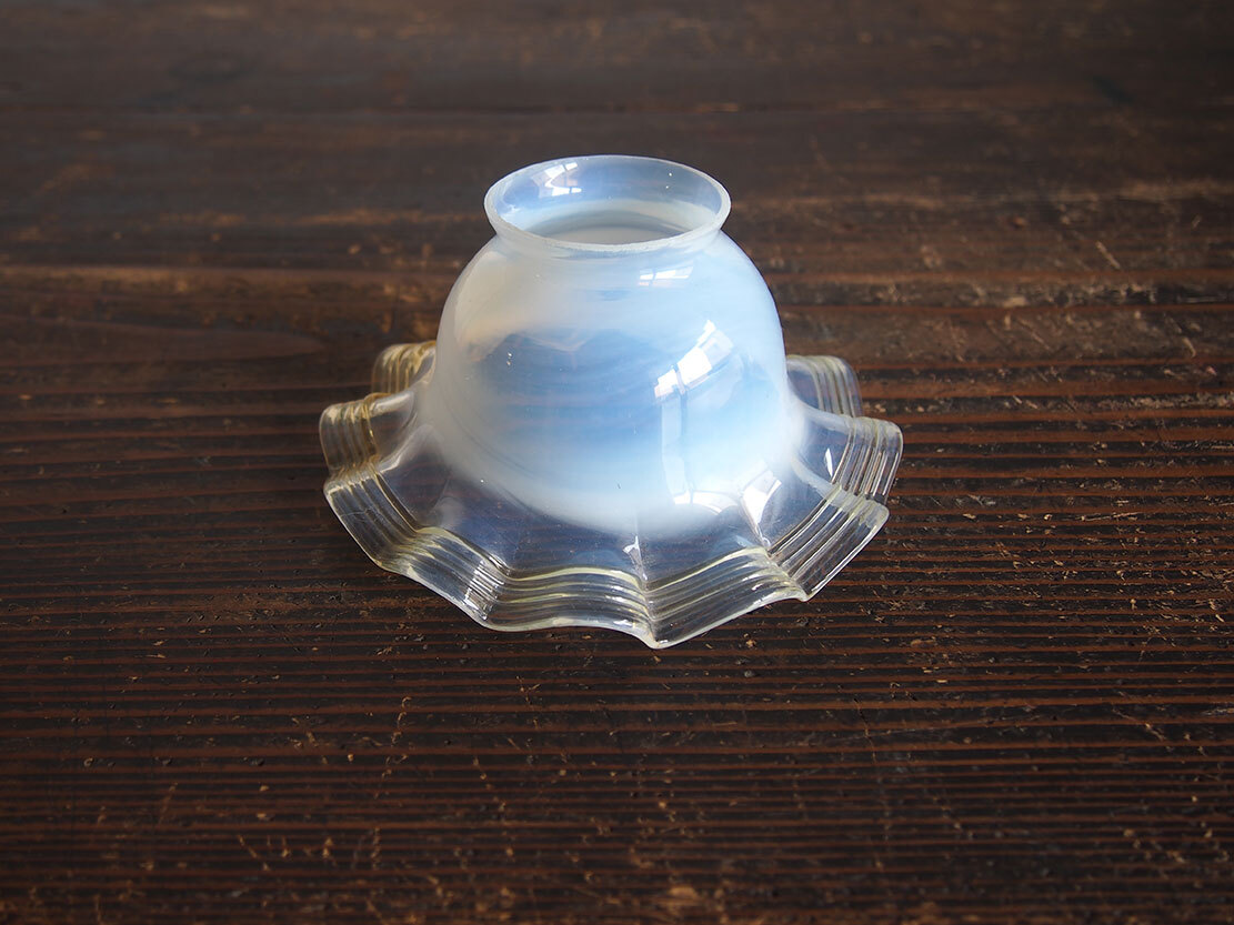 オパールガラス フリルガラス ランプシェード電笠 直径14.6cm 大正ロマン オパールセント ヨーロッパ フランスアンティーク/K297 ●サイズ:高7.5cm, 直径14.6cm ●材質:ガラス ヨーロッパのアンティーク市にて入手、1930年ぐらい? 美しいハンドメイドのガラスシェード。ソケット挿入口外径5.6cm くびれ部分外径5cm くびれ部分内径4.5cm。うっすらと青みを帯びたオパールガラス。フリル部分は薄い黄色味の透明で細い筋模様があります。特に目立つダメージの無い良い状態のものです。日本の規格のソケットE26がご利用いただけます。参考資料、リメイクなどにどうぞ。 詳細は写真でご確認いただけます。古い物だと言う事をご理解の上のご入札をお願い致します。材質及び年代の判定は困難な場合があります、差異についてはあらかじめご了承下さい。 ー ー ー ー ー ー ー ー ー 記載にない方法での発送はいたしません。 発送をお急ぎのお客様にはご希望に添えない場合があります。 ー ー ー ー ー ー ー ー ー ●その他 ヤフオクの小さな写真では商品を詳細にご覧頂く事ができません。リンク写真で質感ダメージ等の写真を数多くアップしています。必ず全部の写真がよく見える環境でご覧下さい。本商品は時代を経た古い物です。写真や説明で記載できないようなキズやシミ、古い物特有の臭いのある物もあります。できる限り詳細に説明するよう努力しておりますが、ご理解頂ける方、神経質で無い方、埃によるアレルギー等の無い方のご入札をお願いします。 必ず当店の自己紹介欄と落札後の落札通知をご覧下さい。 土曜日曜日は基本的には定休日です。メール、質問への回答は月曜日にいたします。 ご連絡は落札後48時間以内にお願いします。ご連絡が無い場合はお客様都合によるキャンセルとさせて頂きます。落札から1週間(土日祝日含む)経過してもご入金が無い場合も同様といたします。ご注意下さい。 特に評価「0」の新規のお客様、および 私とのお取り引きが初めてのお客様は遅れる事の無い様にお願い申し上げます。 評価の悪いお客様のご入札は取り消す場合があります。 入札の取り消しおよびキャンセルは固くお断りいたします。 自己紹介欄には急な連絡事項等も記載してあります、ご入札前に必ずご覧下さい。落札後には『落札通知』の内容も必ずご確認ください。 当オークションをご覧下さりありがとうございました。 Accept Paypal payment |