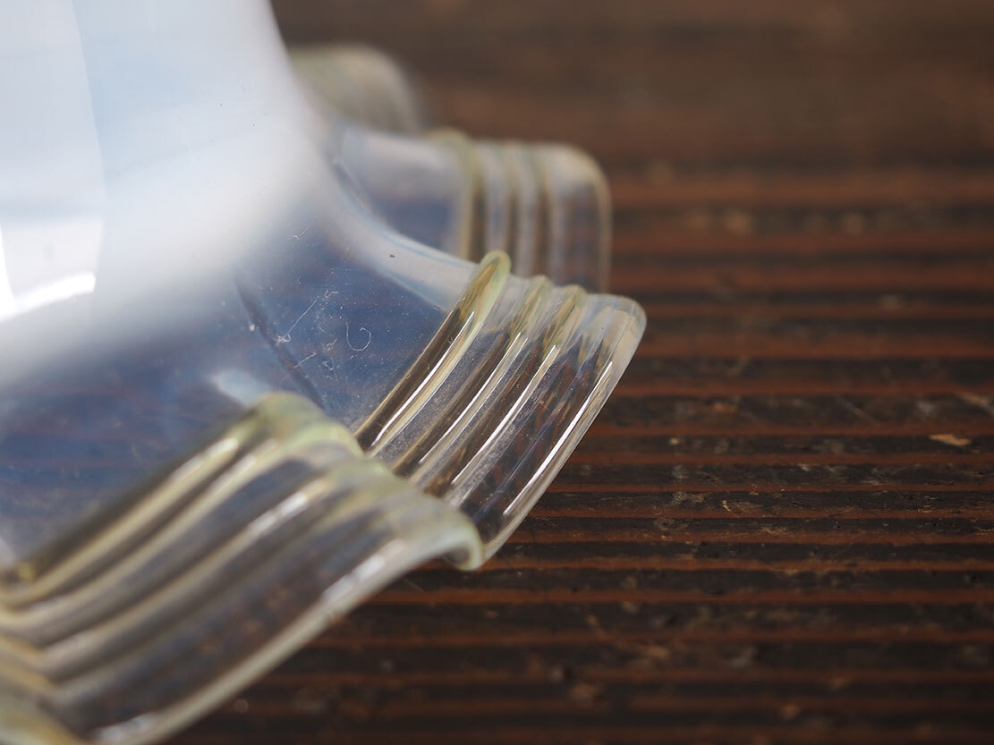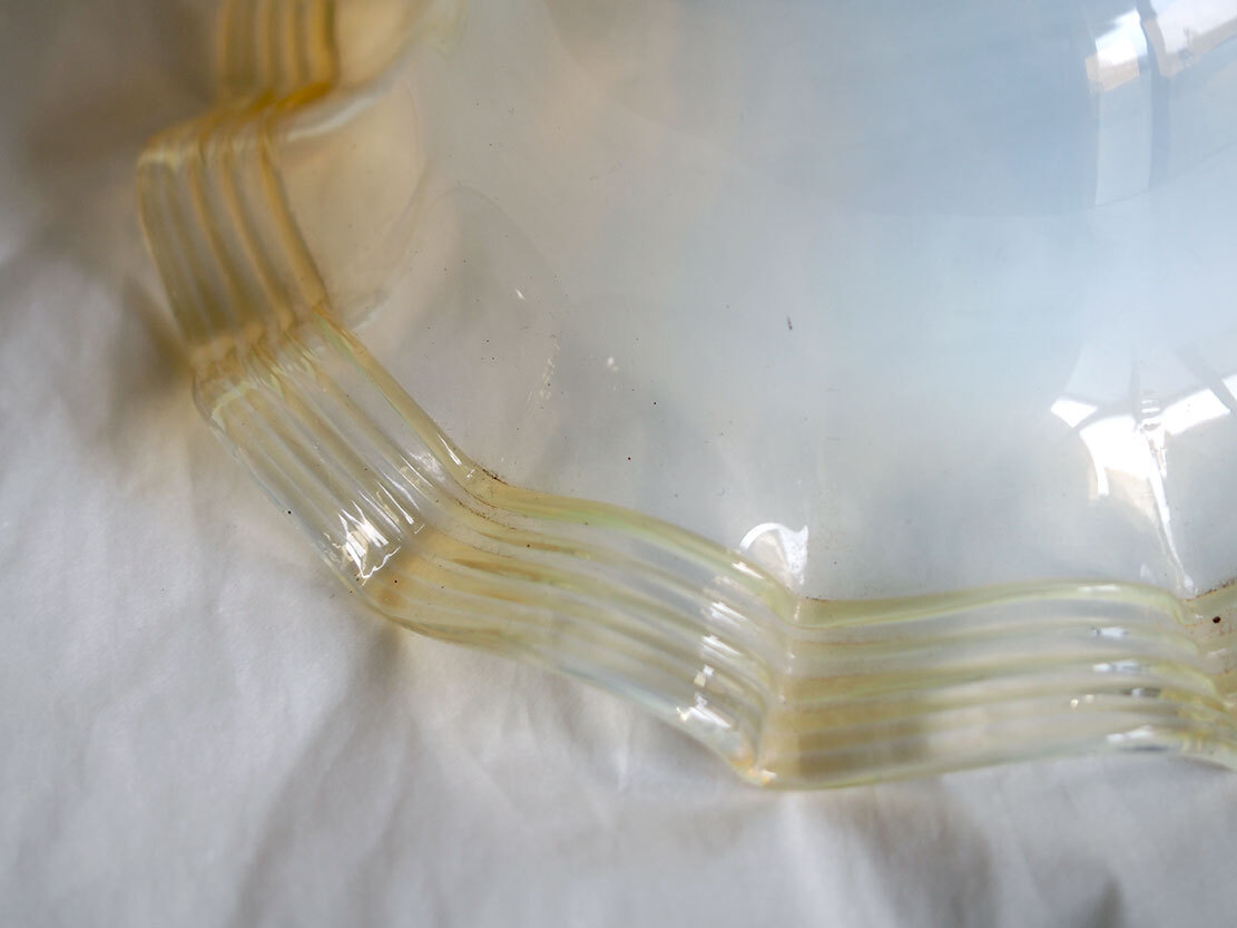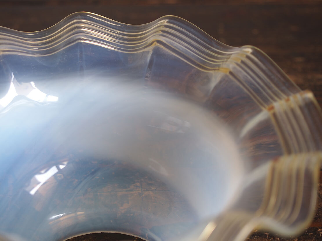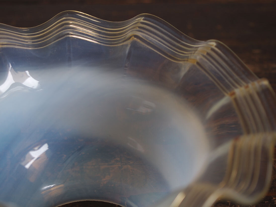 オパールガラス フリルガラス ランプシェード電笠 直径14.6cm 大正ロマン オパールセント ヨーロッパ フランスアンティーク/K297 ●サイズ:高7.5cm, 直径14.6cm ●材質:ガラス ヨーロッパのアンティーク市にて入手、1930年ぐらい? 美しいハンドメイドのガラスシェード。ソケット挿入口外径5.6cm くびれ部分外径5cm くびれ部分内径4.5cm。うっすらと青みを帯びたオパールガラス。フリル部分は薄い黄色味の透明で細い筋模様があります。特に目立つダメージの無い良い状態のものです。日本の規格のソケットE26がご利用いただけます。参考資料、リメイクなどにどうぞ。 詳細は写真でご確認いただけます。古い物だと言う事をご理解の上のご入札をお願い致します。材質及び年代の判定は困難な場合があります、差異についてはあらかじめご了承下さい。 ー ー ー ー ー ー ー ー ー 記載にない方法での発送はいたしません。 発送をお急ぎのお客様にはご希望に添えない場合があります。 ー ー ー ー ー ー ー ー ー ●その他 ヤフオクの小さな写真では商品を詳細にご覧頂く事ができません。リンク写真で質感ダメージ等の写真を数多くアップしています。必ず全部の写真がよく見える環境でご覧下さい。本商品は時代を経た古い物です。写真や説明で記載できないようなキズやシミ、古い物特有の臭いのある物もあります。できる限り詳細に説明するよう努力しておりますが、ご理解頂ける方、神経質で無い方、埃によるアレルギー等の無い方のご入札をお願いします。 必ず当店の自己紹介欄と落札後の落札通知をご覧下さい。 土曜日曜日は基本的には定休日です。メール、質問への回答は月曜日にいたします。 ご連絡は落札後48時間以内にお願いします。ご連絡が無い場合はお客様都合によるキャンセルとさせて頂きます。落札から1週間(土日祝日含む)経過してもご入金が無い場合も同様といたします。ご注意下さい。 特に評価「0」の新規のお客様、および 私とのお取り引きが初めてのお客様は遅れる事の無い様にお願い申し上げます。 評価の悪いお客様のご入札は取り消す場合があります。 入札の取り消しおよびキャンセルは固くお断りいたします。 自己紹介欄には急な連絡事項等も記載してあります、ご入札前に必ずご覧下さい。落札後には『落札通知』の内容も必ずご確認ください。 当オークションをご覧下さりありがとうございました。 Accept Paypal payment |