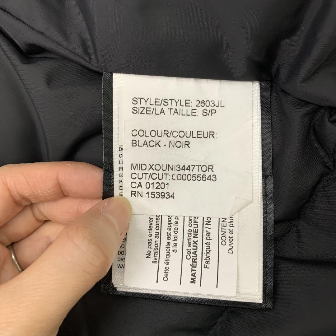 【 商品名 】 CANADA GOOSE BRONTE PARKA ダウンジャケット サイズ:S 【 コンディション 】 ●ブランド● CANADA GOOSE カナダグース ●商品名● BRONTE PARKA ●型番● 2603JL ●サイズ● サイズ:S P 165/88A 着丈:約79cm 肩幅:約35cm 身幅:約45cm 袖丈:約64.5cm (素人の平置きでの採寸ですので、多少の計測誤差はご了承ください。) ●コンディション● 中古品になります。 使用感があり、袖裏に毛玉、フロント部分と背中の縫い目部分にスレが見受けられます。 フードのファー部分は取り外し可能です。 ※お品物の状態などは画像にてご確認くださいませ。 出品のお品物は一度は人の手を渡ったお品物になります。 画像に写っている物が全てになります。 その他、記載外の不具合・見落としがあった場合でも現状渡しとなります。 いかなる場合でも返金・返品はお受け致しません。 万が一、落札後に破損等がありましても返金・返品の対応は一切致しかねますので、 商品に関しまして良くご理解頂いた上で、 ノークレーム・ノーリターンでご入札下さいますようお願い致します。 【 発送について 】 ヤマト運輸の運賃元払いのみの取扱いとなります。 ※その他の発送方法には対応できません。落札後に指定されても対応致しかねます。 手渡し、引取などにも対応致しかねます。ご承知の上でご参加下さい。