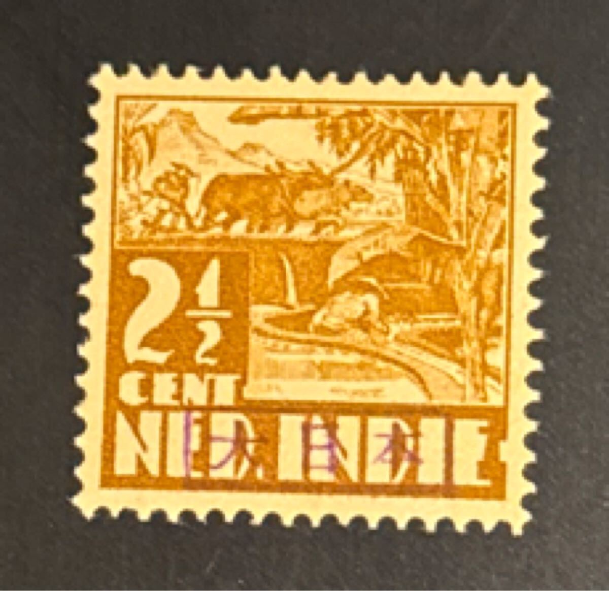 南方占領地 スマトラ 東海岸州 大日本枠付紫加刷 農耕切手 [透かしあり] 2 1/2 cent