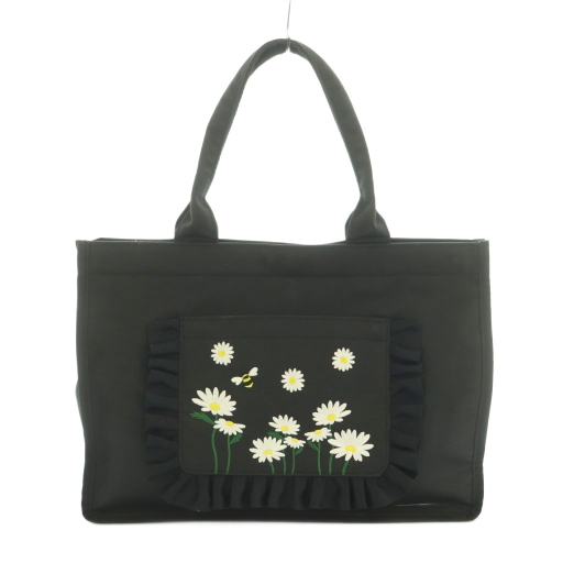チェスティ Chesty トートバッグ ガーデン刺繍 花柄 フリル 黒 /MI ■OS レディース