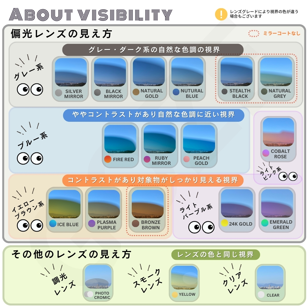 | 当レンズ(偏光レンズ)はコントラストを向上させ、透明度を高め、眩しさを軽減します。 |