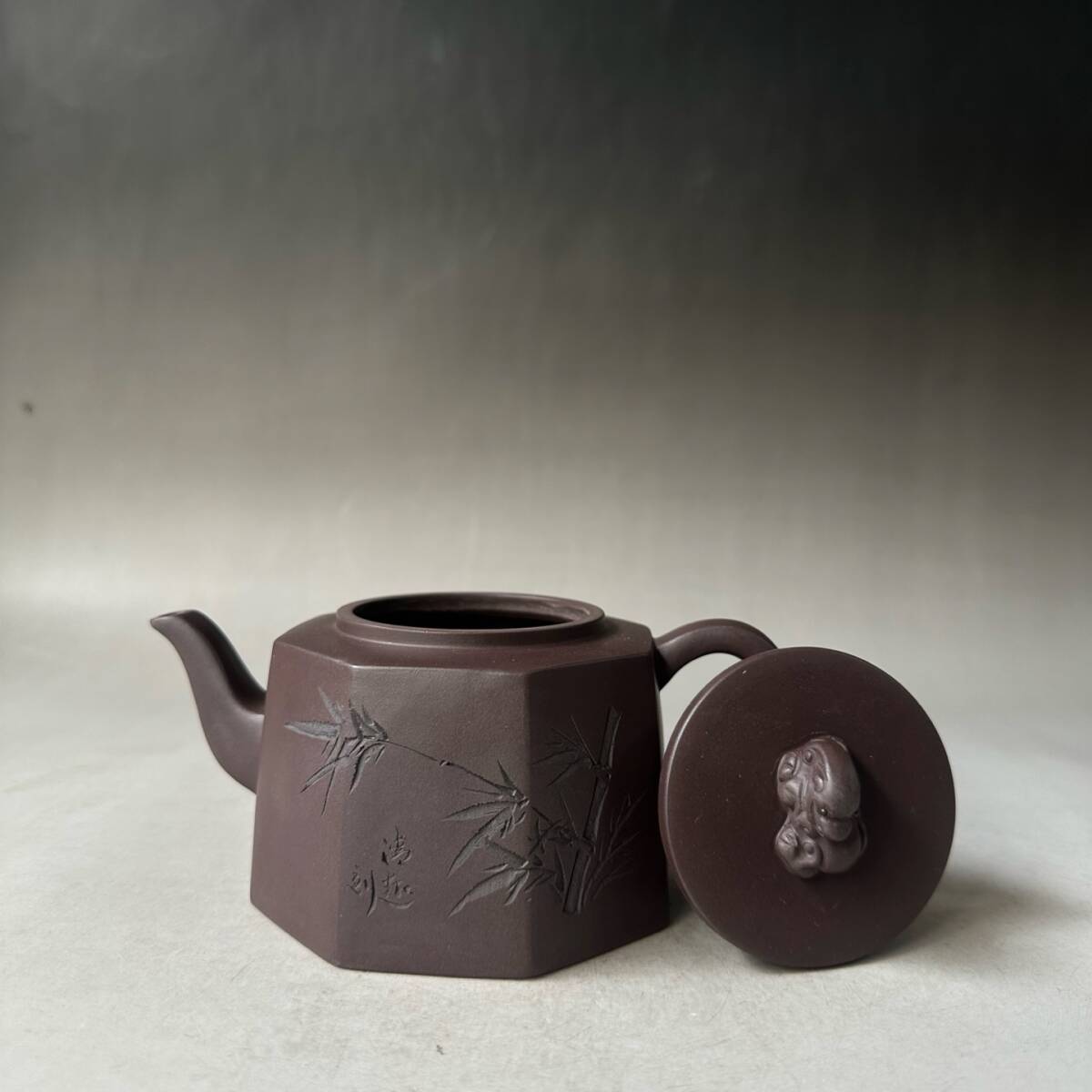 【超珍館蔵】紫砂壺 八方載福壺 金鼎商標款 紫砂 茶具 茶道品 置物 賞物 古賞物 古董品 古美術品 時代物 旧家蔵出 稀少珍蔵品