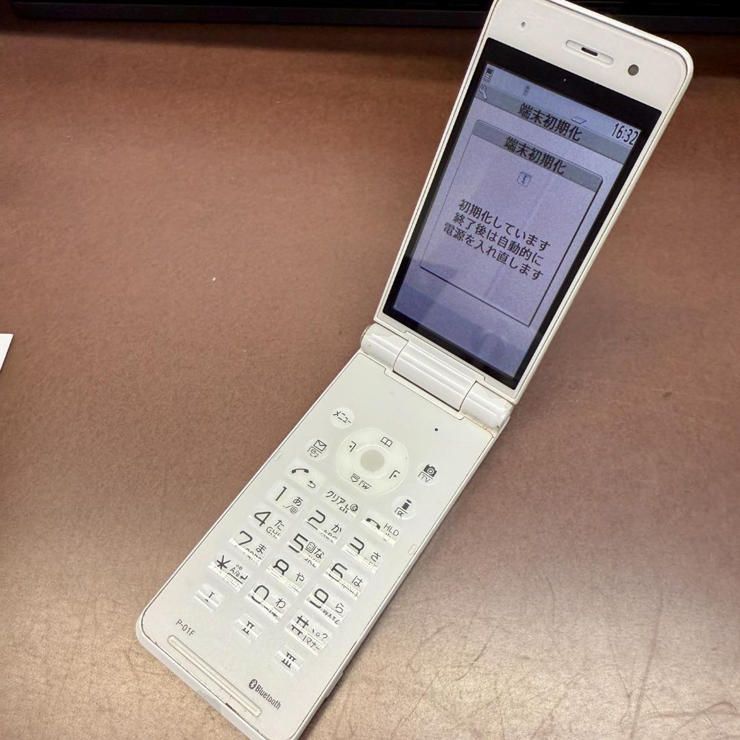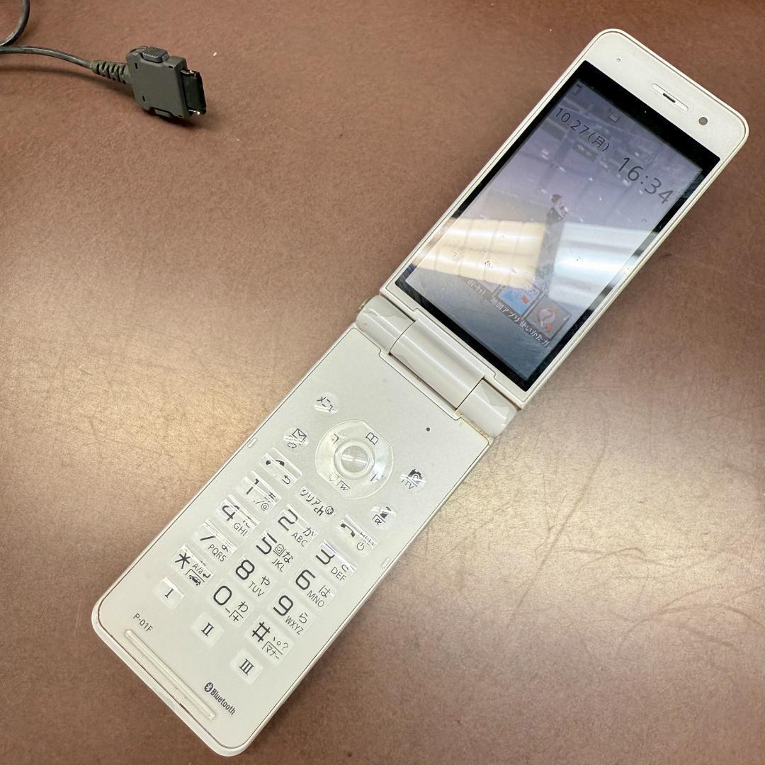 コンパクトなホワイトのP-01F、Bluetooth対応、約3.4インチの画面とカメラ機能を搭載。