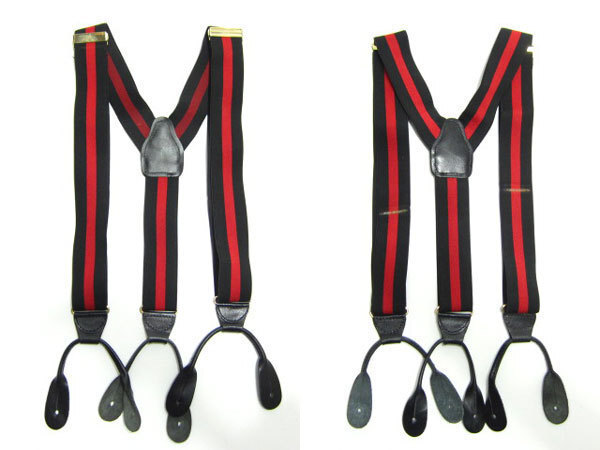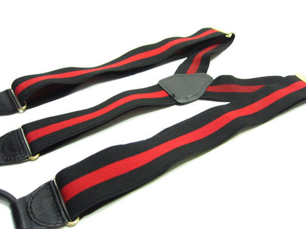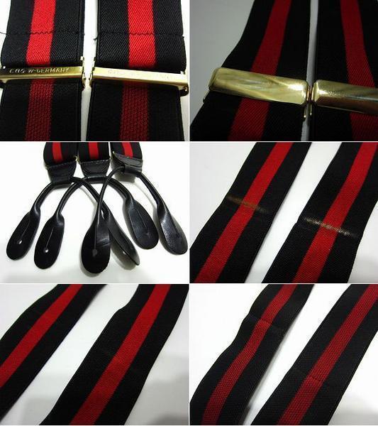 | 商品名 | CAS W-GERMANY/伸縮素材×レザー/ボタンタブ式/Y型 サスペンダー/黒×赤系/メンズ/D82 |