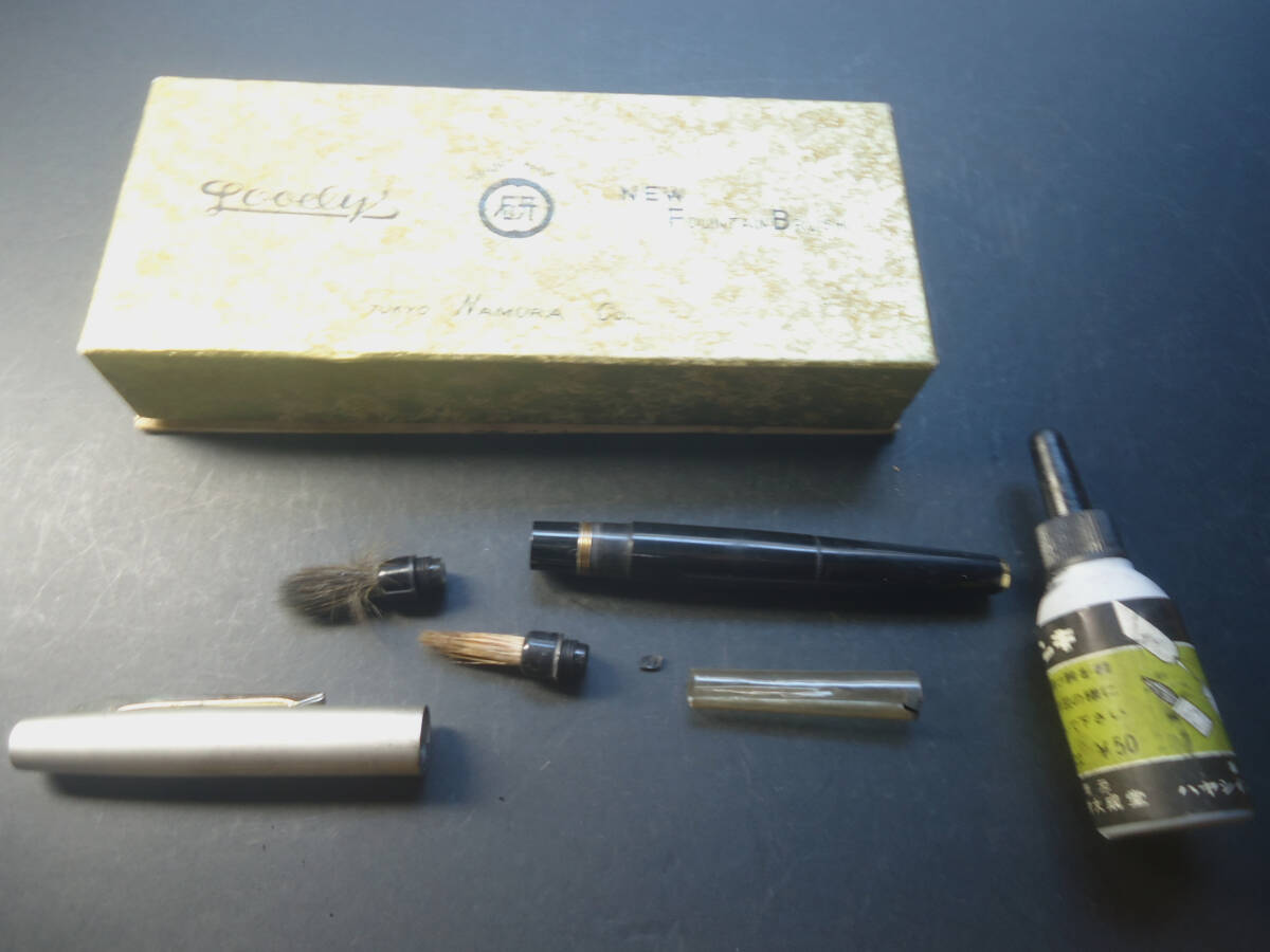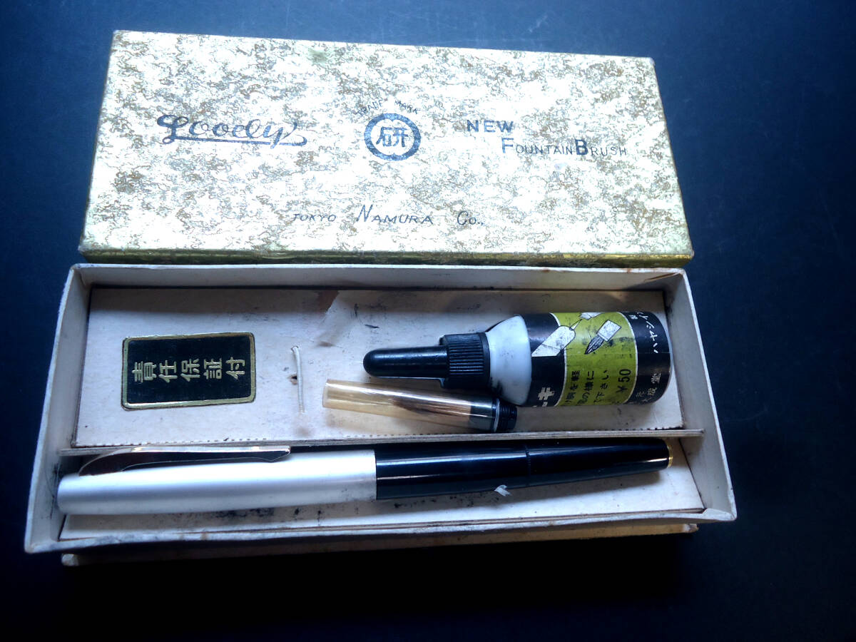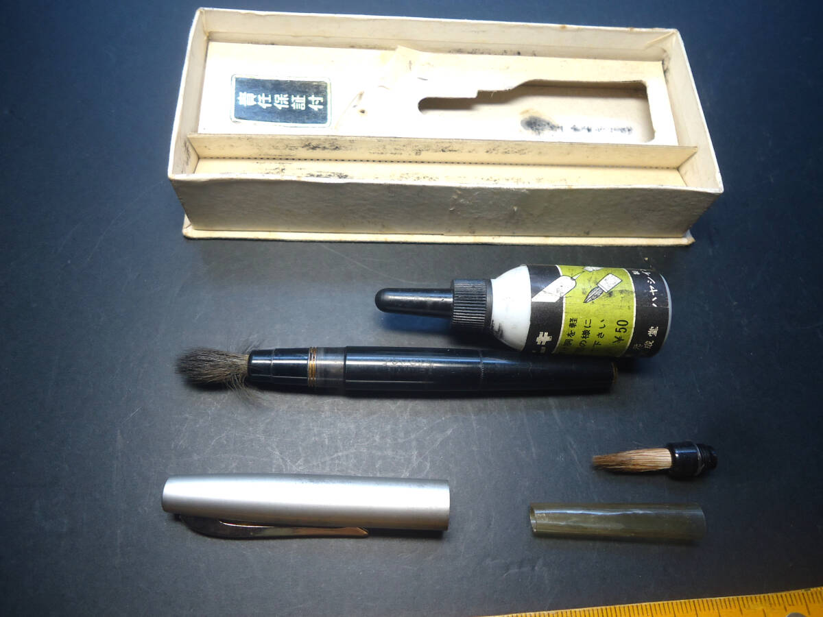 稀少品 昭和の毛筆の万年筆 珍品です。墨汁壺は空です。替芯(毛先)つきです。