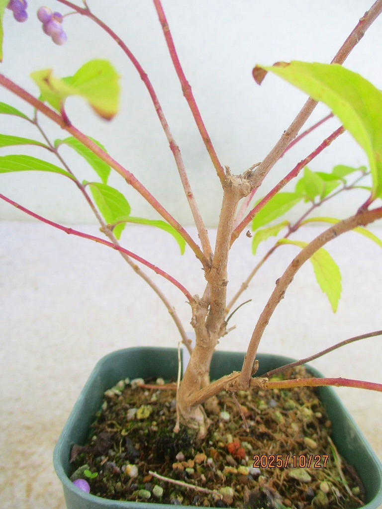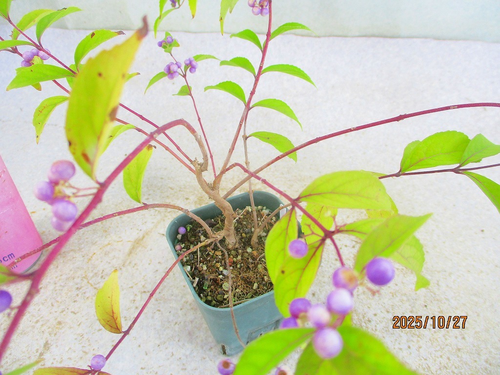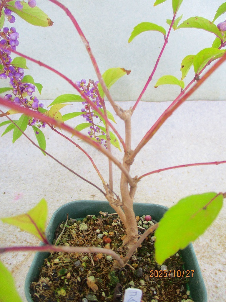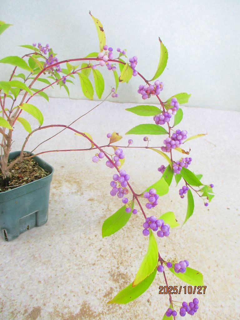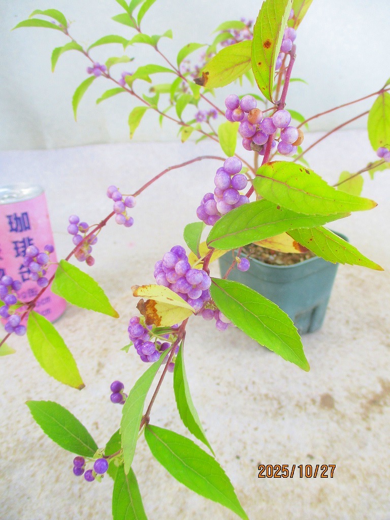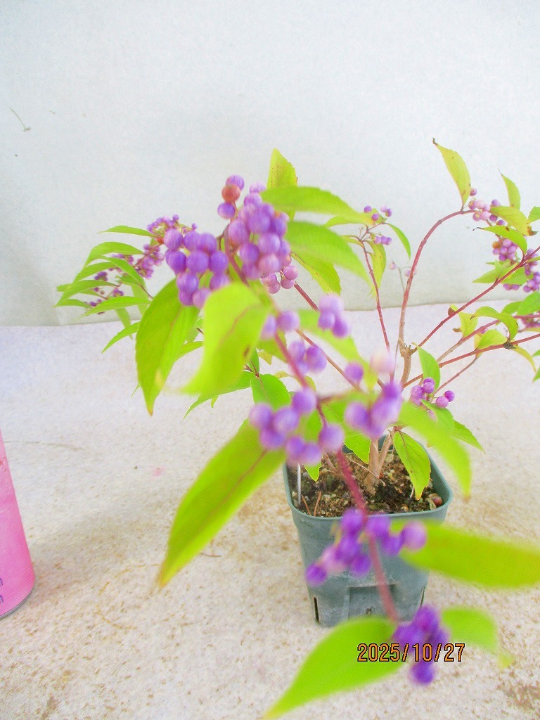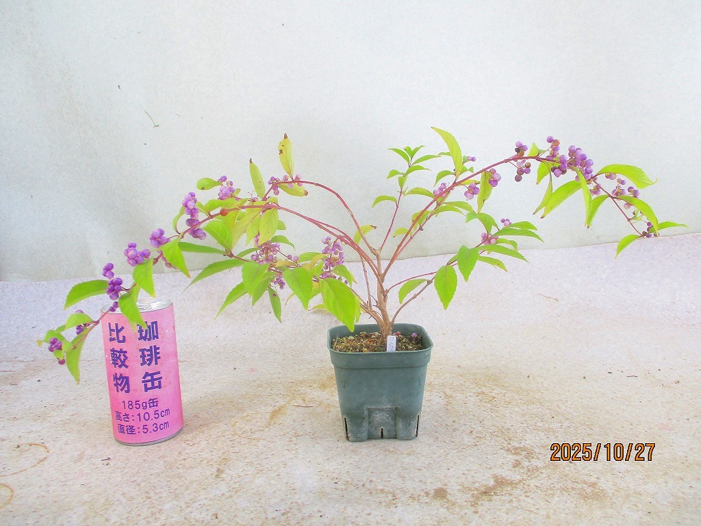 [緑の市場]紫式部(102414スリット鉢)全高:23㎝*同梱包対応「まとめて取引」厳守*80サイズ送料明記 同梱包ご希望は「まとめて取引」でお手続きして下さい。 *同梱包は[緑の市場]のタイトルでの出品商品に限ります。類似画像で他IDの出品にご注意下さい。* 単品(セット品は1組)発送ご希望の際は「まとめて取引」の手続きをしないでください。入札前に必ず下記の「発送方法」に記載の送料を確認してください。 ヤフオクの取引においてメッセージは特に必要ありません。挨拶などを省略できる取引システムですし取引ナビの通知で進行状況が判るので都度の連絡(送金や受け取りのメッセージ)は不要です。配送日時指定や連絡事項のみお知らせください。双方合理的に進めましょう。また、お急ぎの方は入札をご遠慮ください。業務時間内での対応になります(土日祝休業)。 寸法は鉢を含む全高です。(樹高ではありません。) 一緒に撮影しているスケールまたは比較物をご参照ください。 飲料缶は高さ約10㎝、直径約5㎝です。 500mlペットボトルは高さ約21㎝です。 ■画像の様子から経時変化しますので撮影日(画像記載)からの変化はご了承下さい。 *花物・実物は特にご注意下さい。 画像(撮影時)では開花品でも、お届け時は花終わりを想定して下さい。 ◎落札が無い場合は、自動再出品が継続されます。 撮影から2か月経過した場合、どんどん開始価格が下がりますが、商品の劣化も進みますので、 撮影日からの期間経過品はある程度の劣化を想定で入札にご参加下さい。 商品により90日間程度(物によりそれ以上)同じ画像を使用しますので、必ず撮影日をご確認下さい。 |