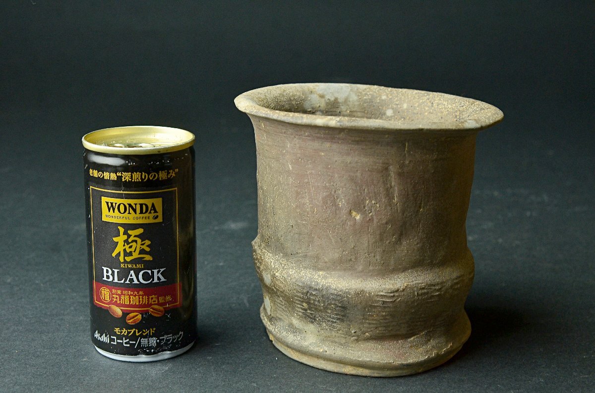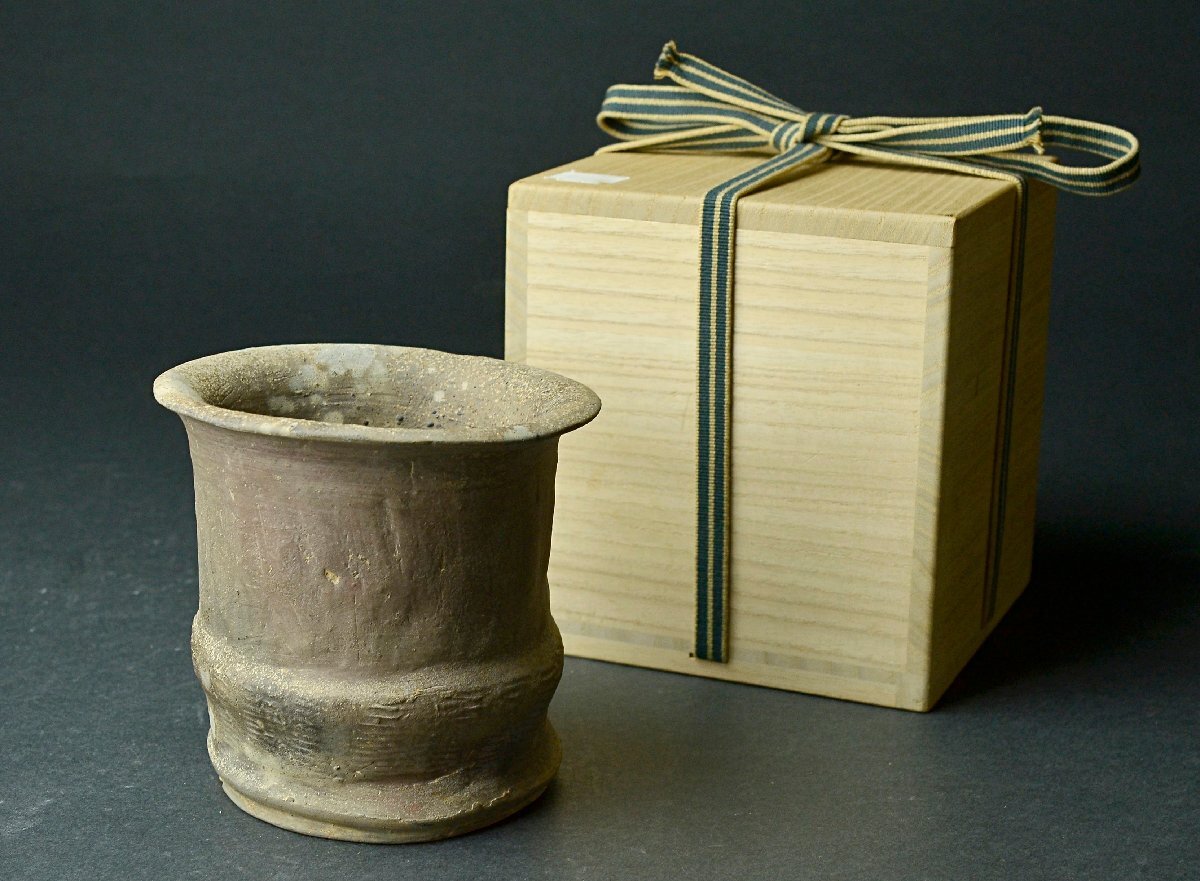 【YB】時代 焼〆竹節形花入・瓶・桐箱付属 ★日本古玩骨董