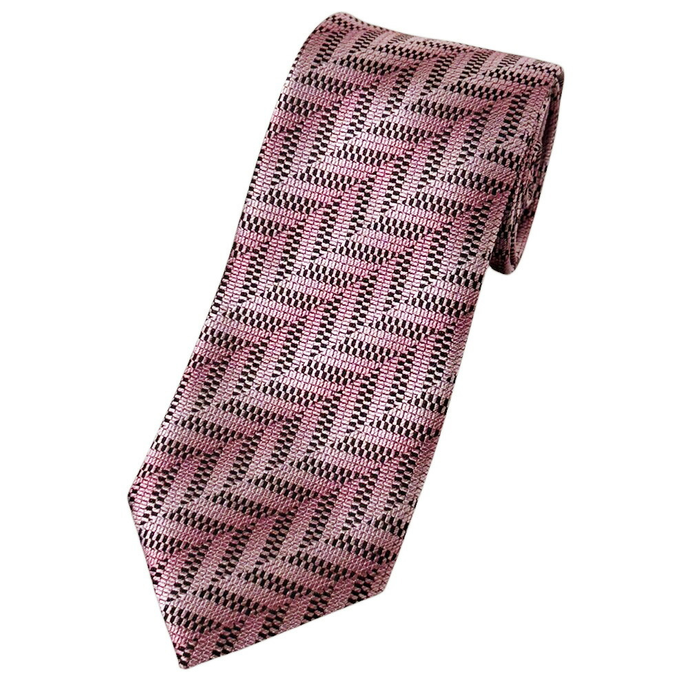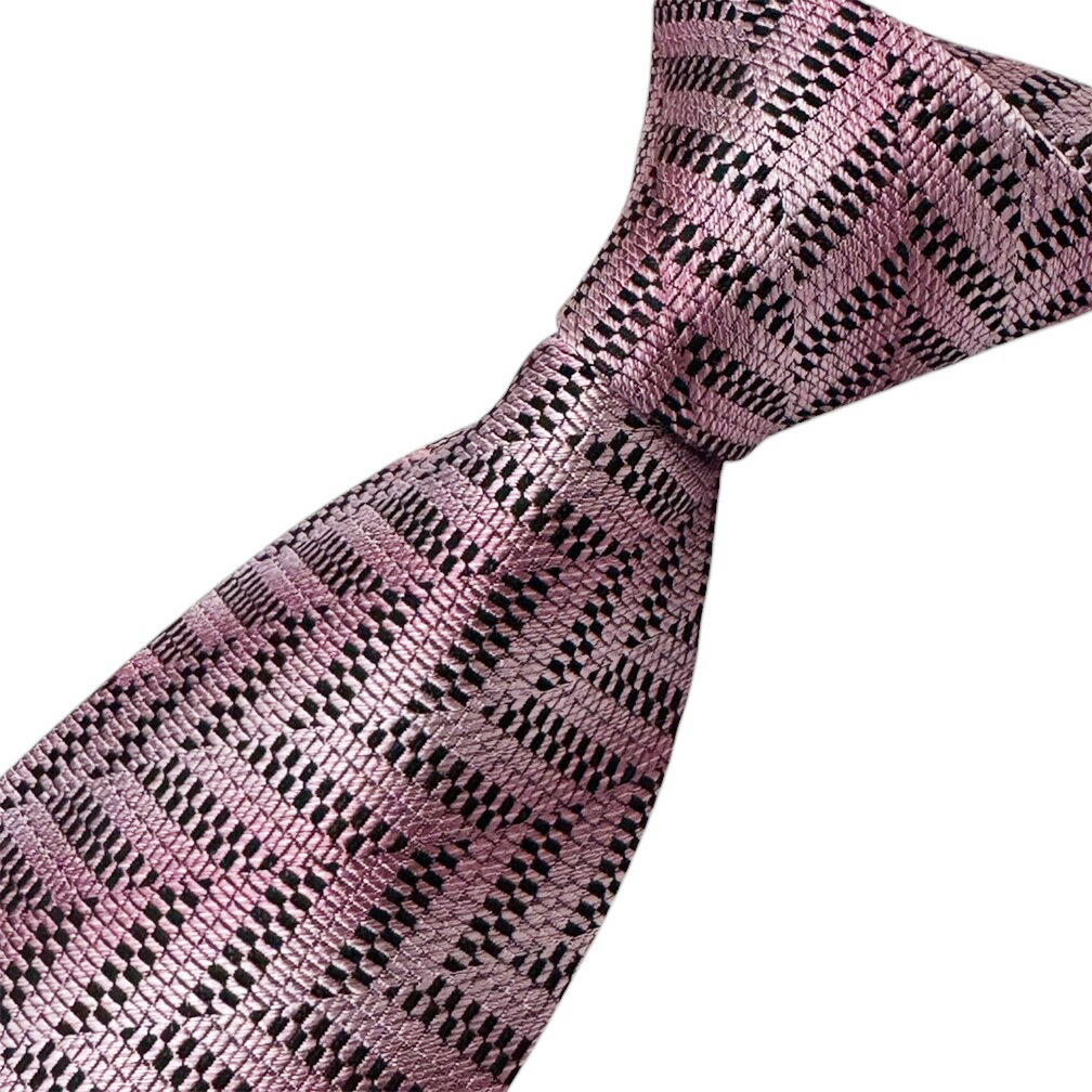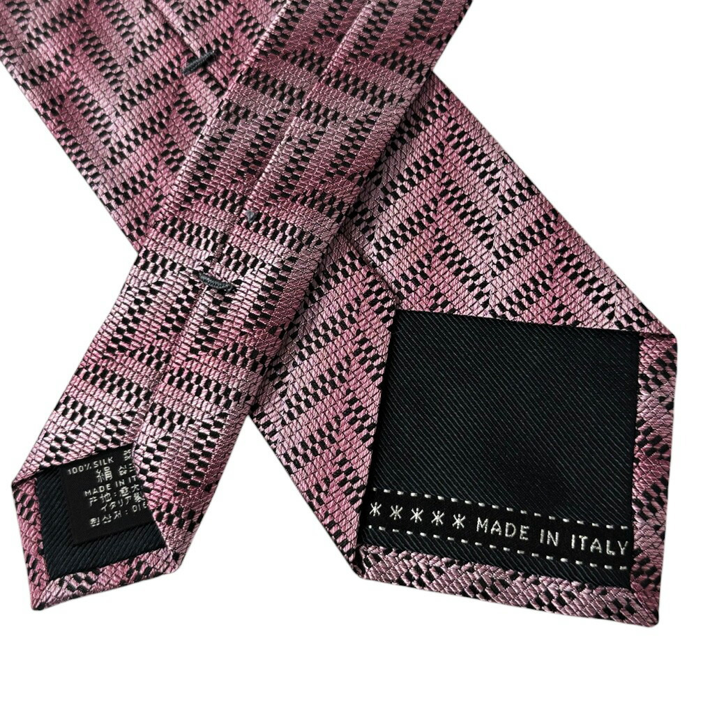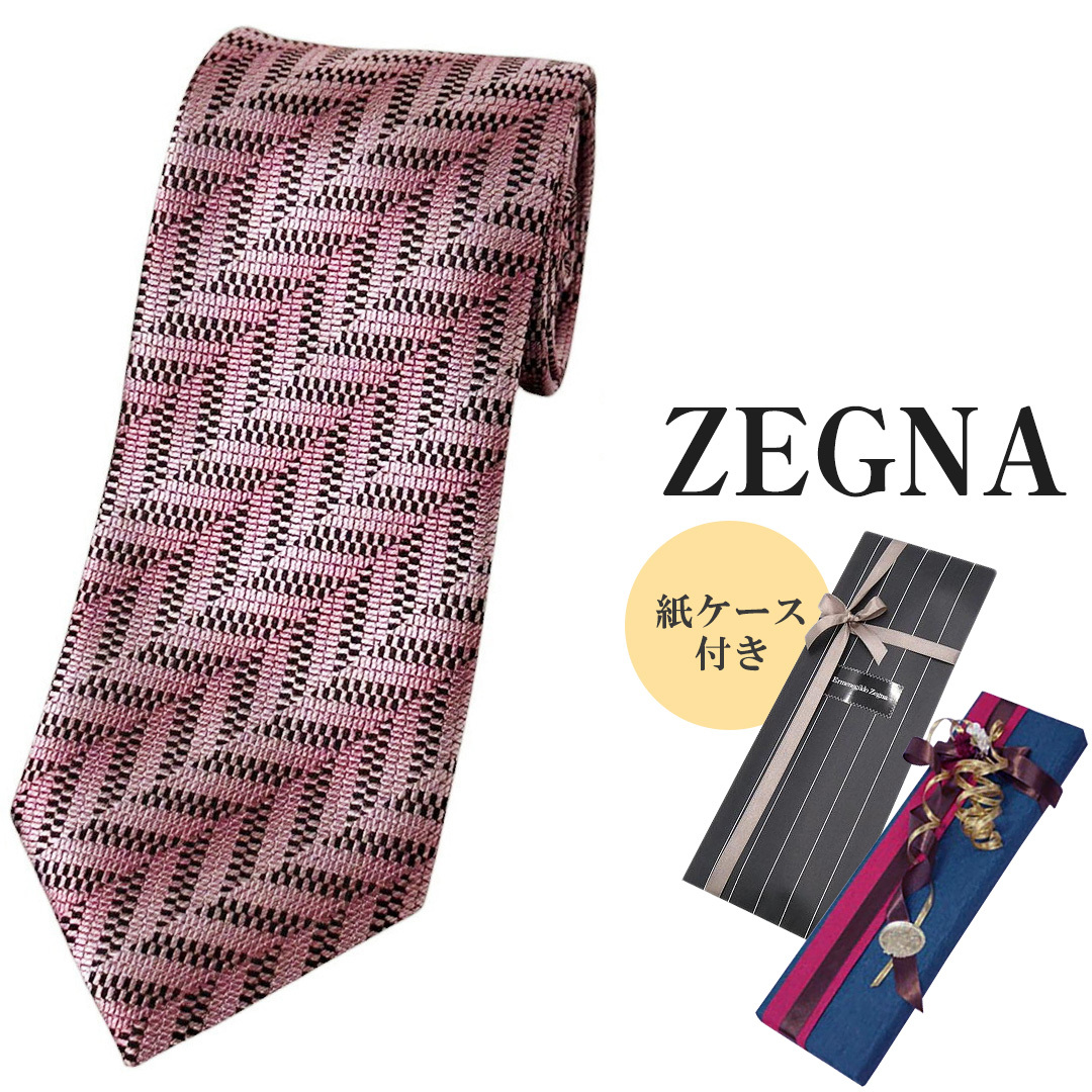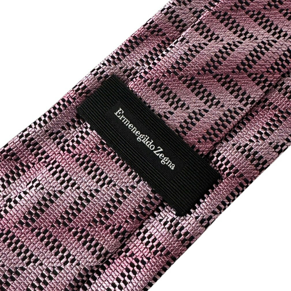 ゼニア ブランド ネクタイ エルメネジルド・ゼニア 高級 シルク100% シェブロン ピンク ブラック