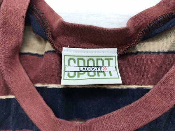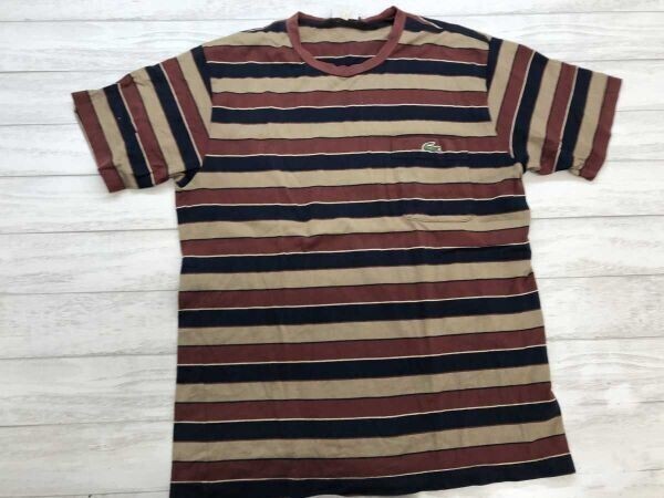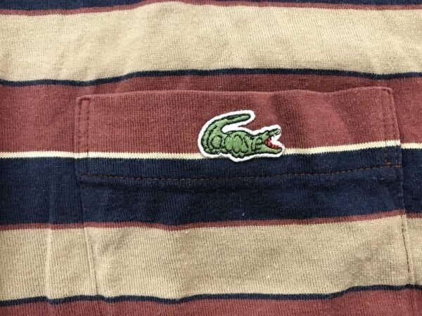 ラコステ LACOSTE SPORT レトロ フレンチ トラッド スポーツ マルチボーダー 胸ポケット ポケT 半袖Tシャツ メンズ コットン混合 L 茶系です。