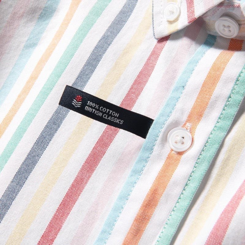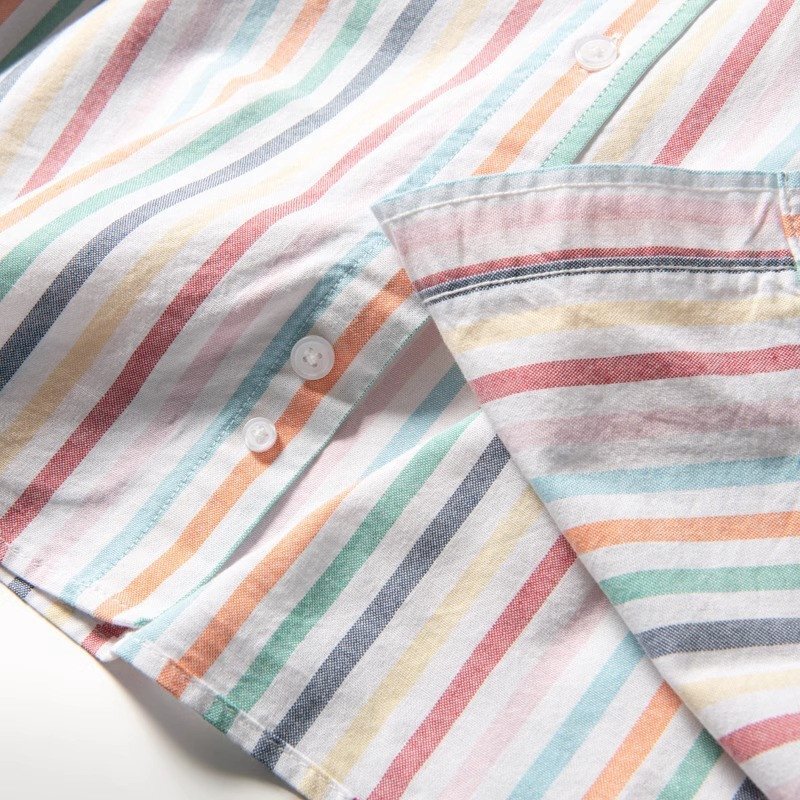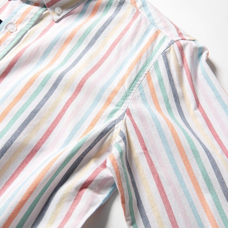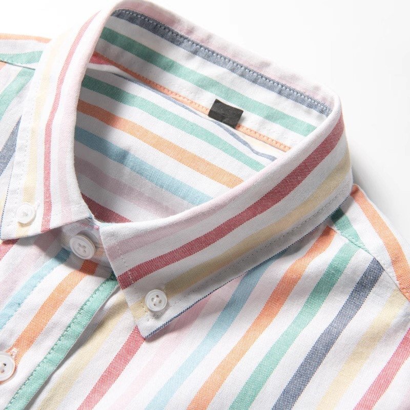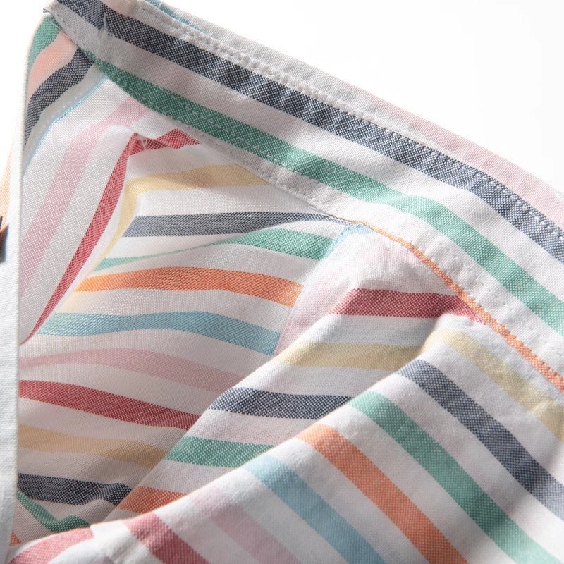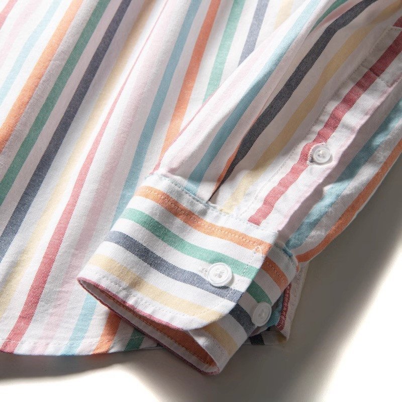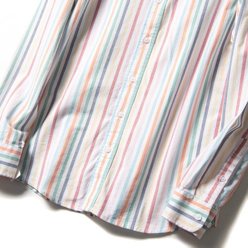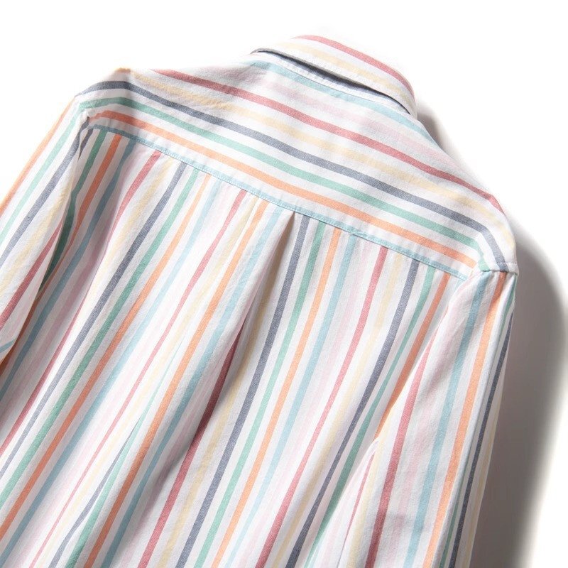 人気爆売!DCKMANY 新品 メンズ長袖シャツ 純綿 オックスフォード 春夏 レインボーストライプ柄 日常 カジュアル/T4026-XL