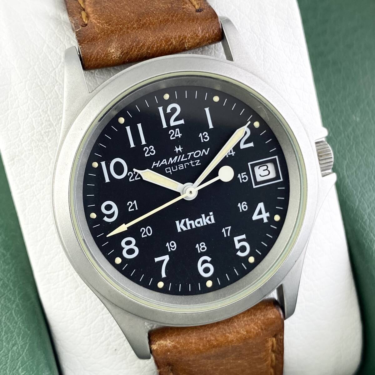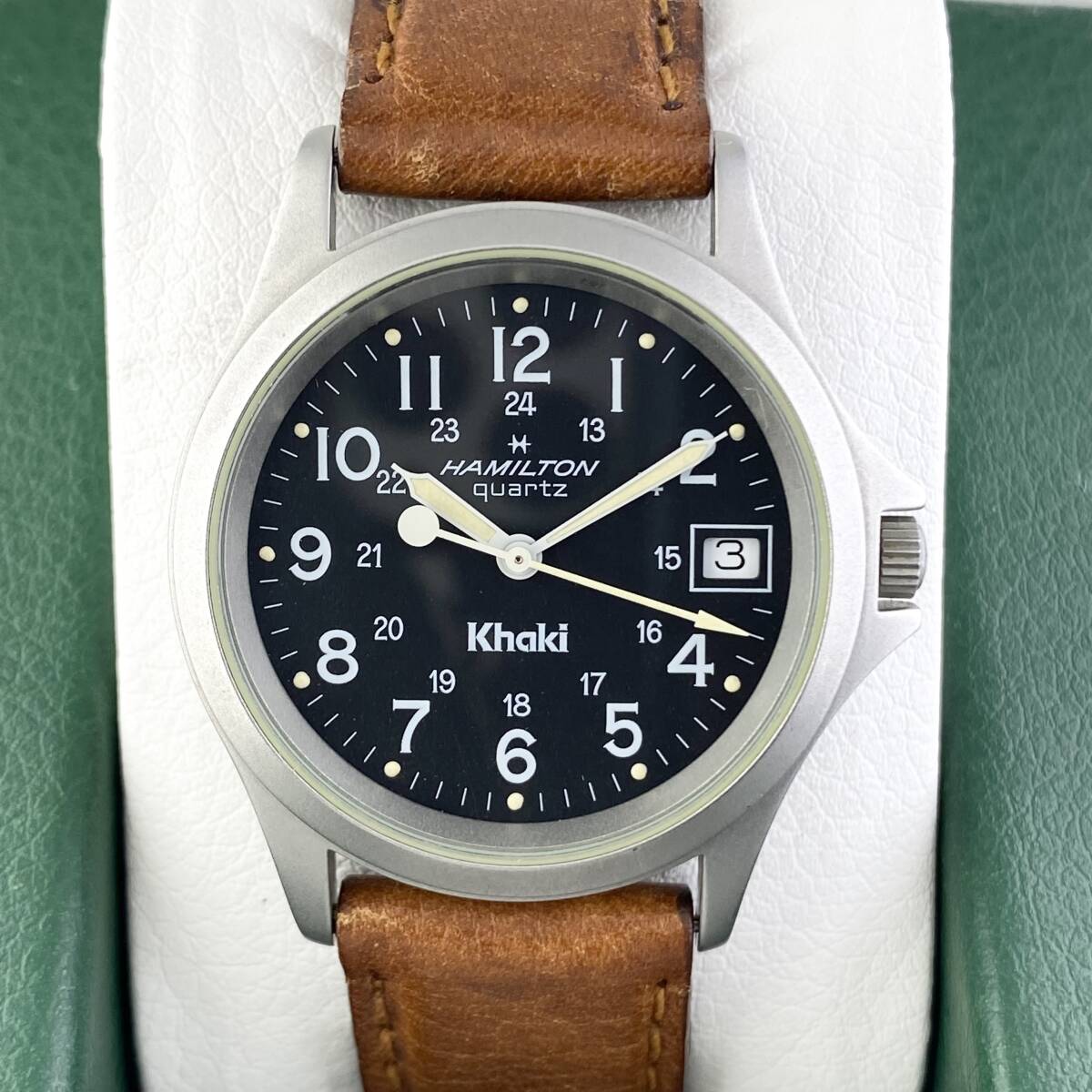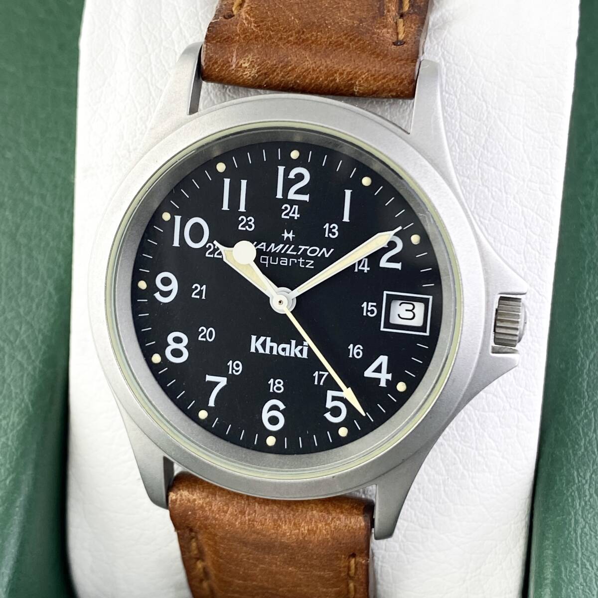 【1円〜】HAMILTON ハミルトン 腕時計 メンズ KHAKI カーキ 9445 ブラック文字盤 ラウンドフェイス デイト 可動品 | |||