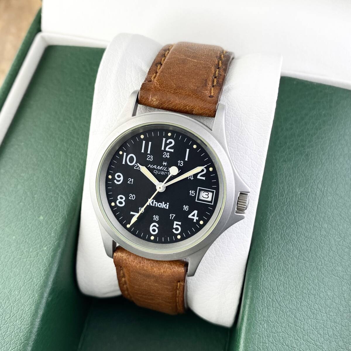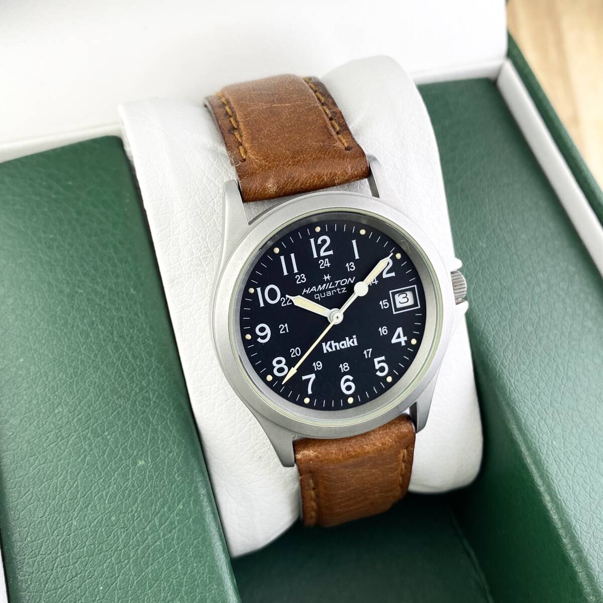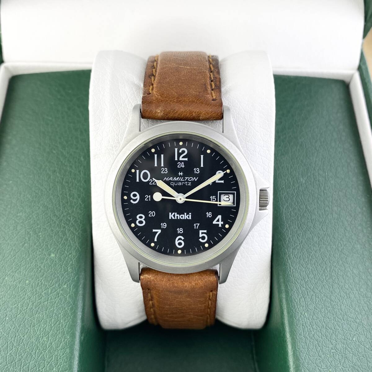 【1円〜】HAMILTON ハミルトン 腕時計 メンズ KHAKI カーキ 9445 ブラック文字盤 ラウンドフェイス デイト 可動品 | |||