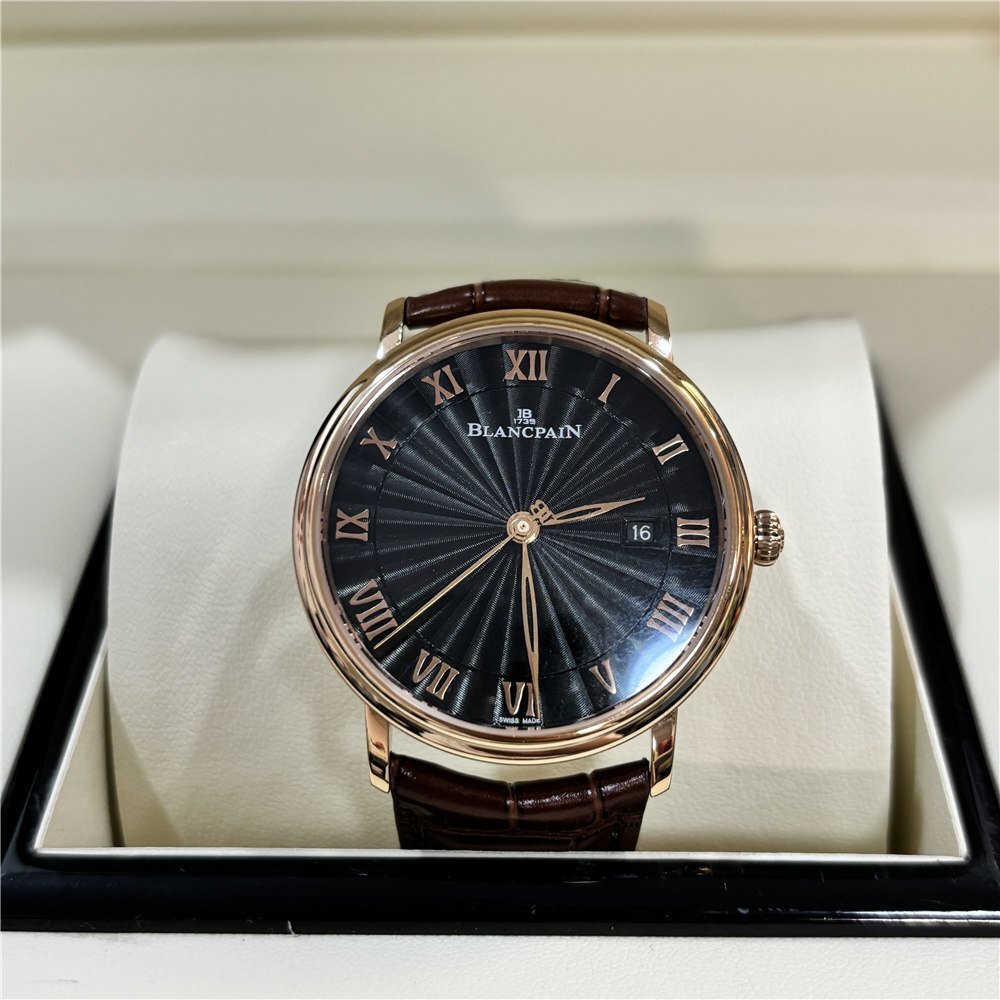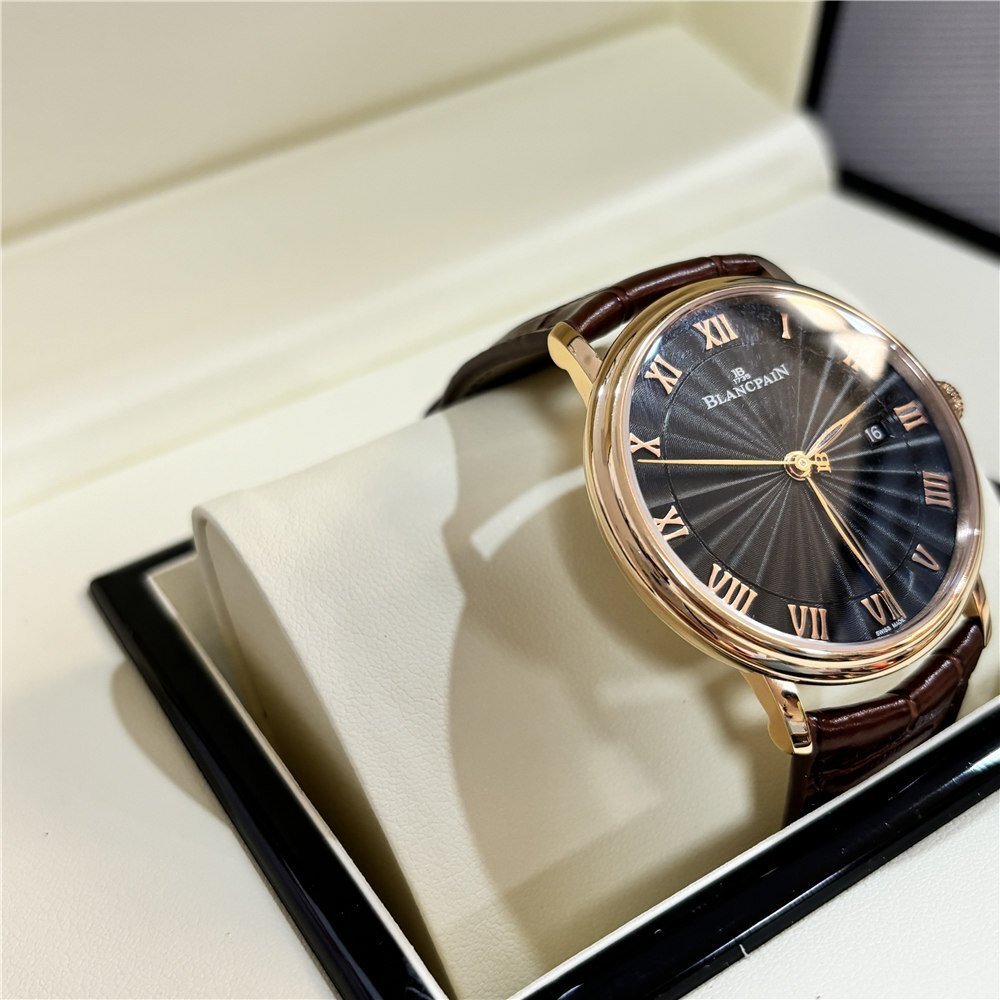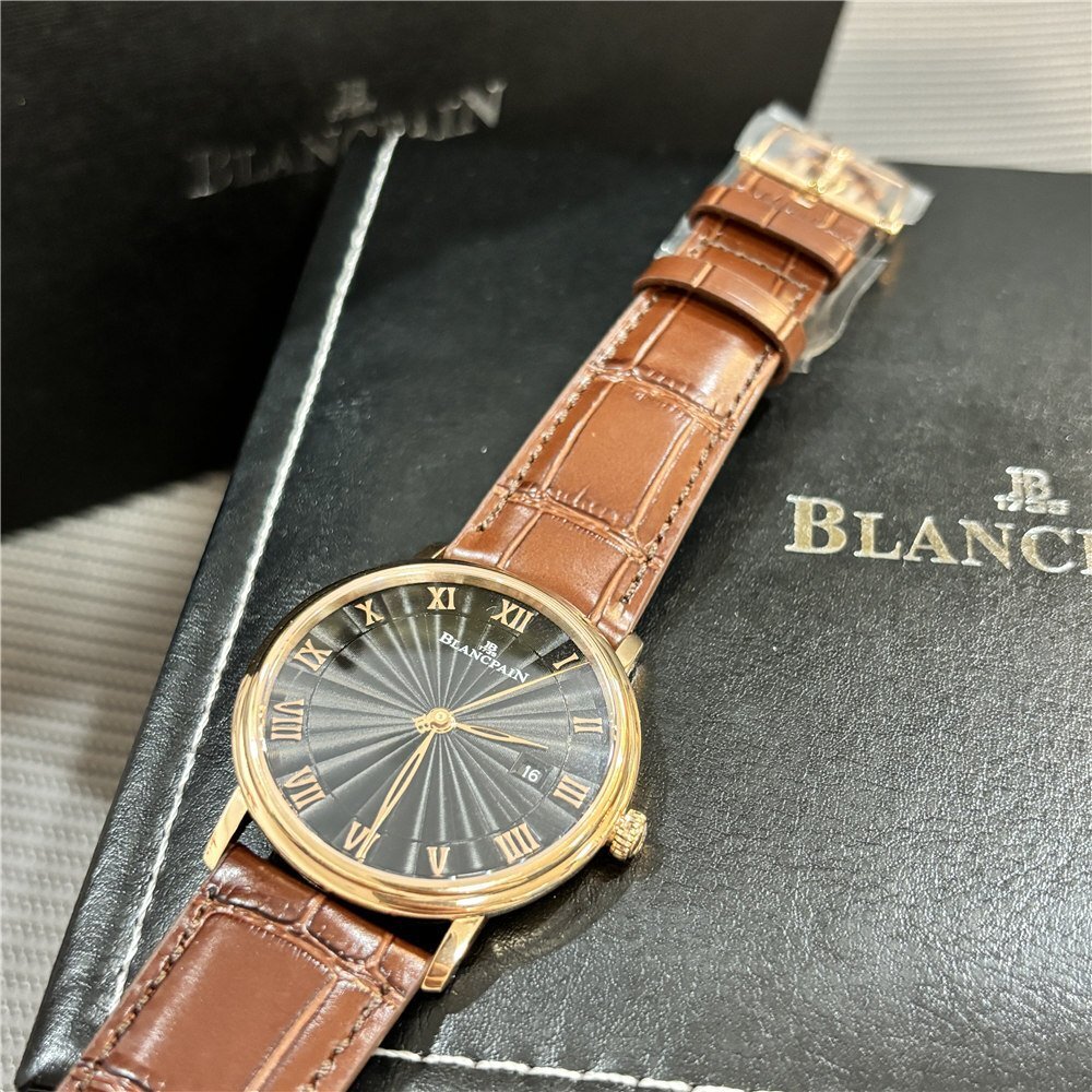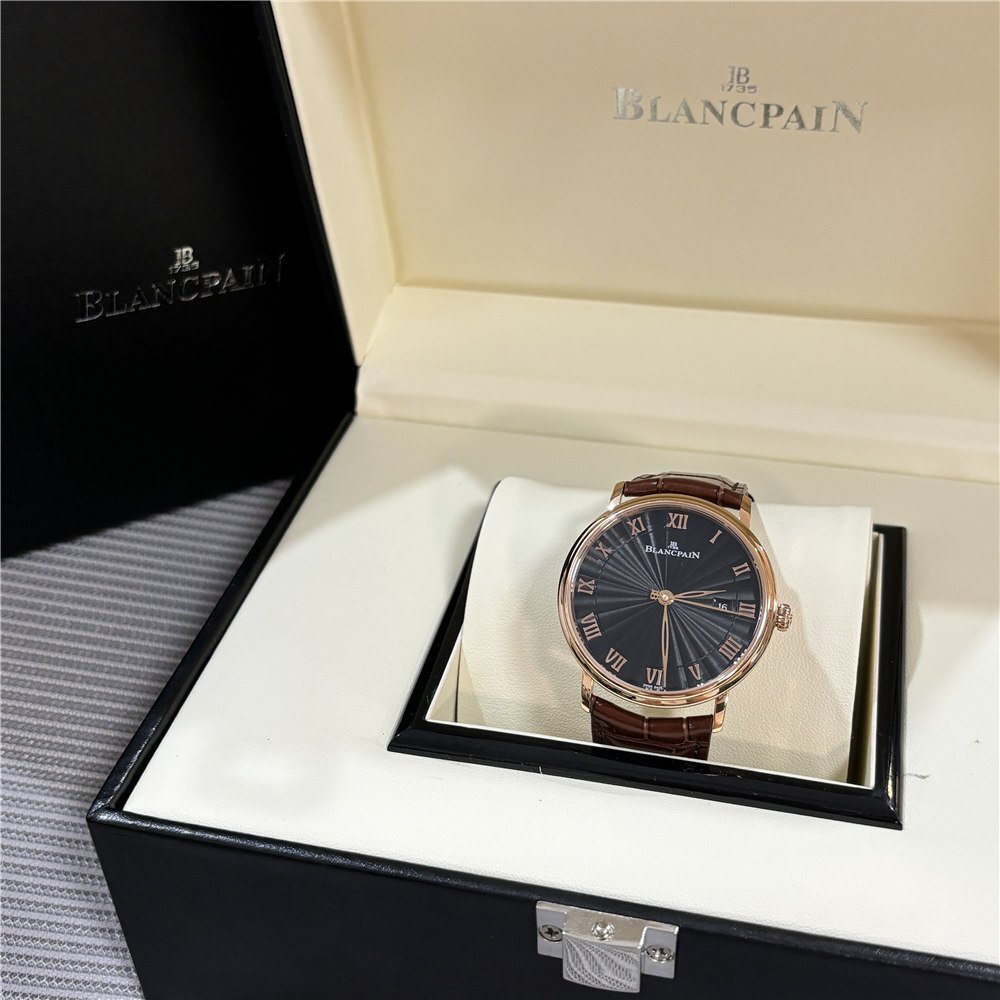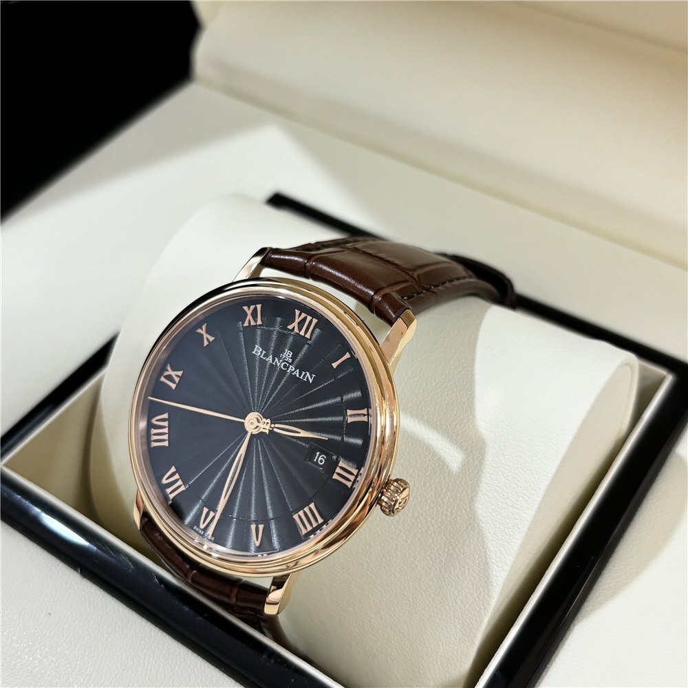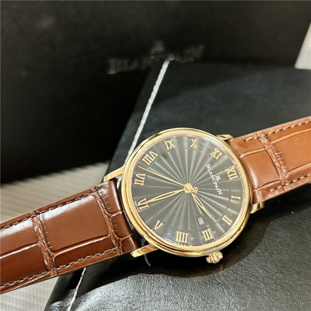 | 【商品名】 | Blancpain villeret ブランパン 自動巻き 腕時計 メンズ 黒文字盤 紳士用 ゴルード ブラウンベルト 6651-3630-55B |