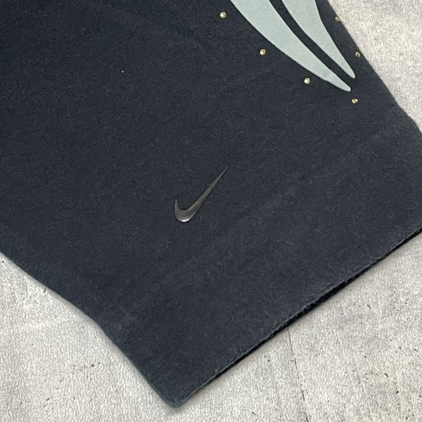 美品 NIKE 参考定価27500円 スウェット ジャージ ゆるダボ ナイキ  ブティック ファンネルネック プルオーバー ビッグシルエット YL2614 オーバーサイズ ストリート ダンス ヒップホップ レゲエ ラップ スポーツ トレーニング 超ハイデザイン アーム スウォッシュ ワンポイント スウェットとジャージの中間の様な素材感 ハイクオリティー素材 速乾性 使用感うすい美品 ブラック 黒