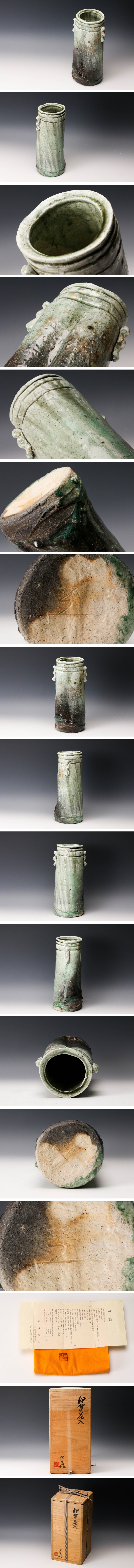 【佳香】古谷道生 高さ27cm 伊賀花入 共箱 共布 栞 本物保証