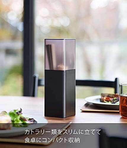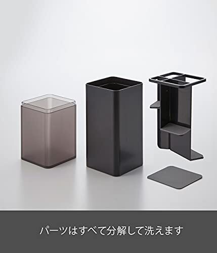 山崎実業(Yamazaki) 蓋付き カトラリースタンド ブラック 約W8XD8XH25cm タワー ホコリ防止 仕切り付き 5373