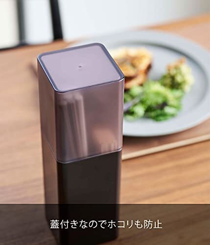 山崎実業(Yamazaki) 蓋付き カトラリースタンド ブラック 約W8XD8XH25cm タワー ホコリ防止 仕切り付き 53