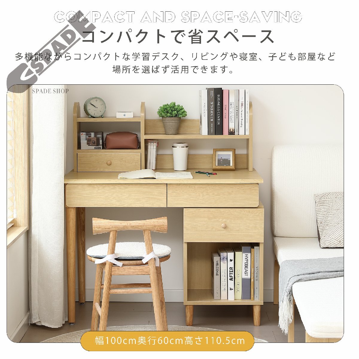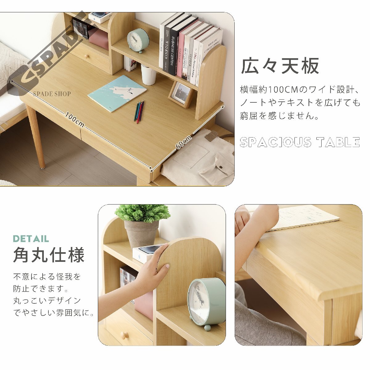 • 【広々天板】横幅約100cmのワイド設計、ノートやテキストを広げても窮屈を感じません。使いやすいサイズ感で、日常の勉強や作業もはかどります。