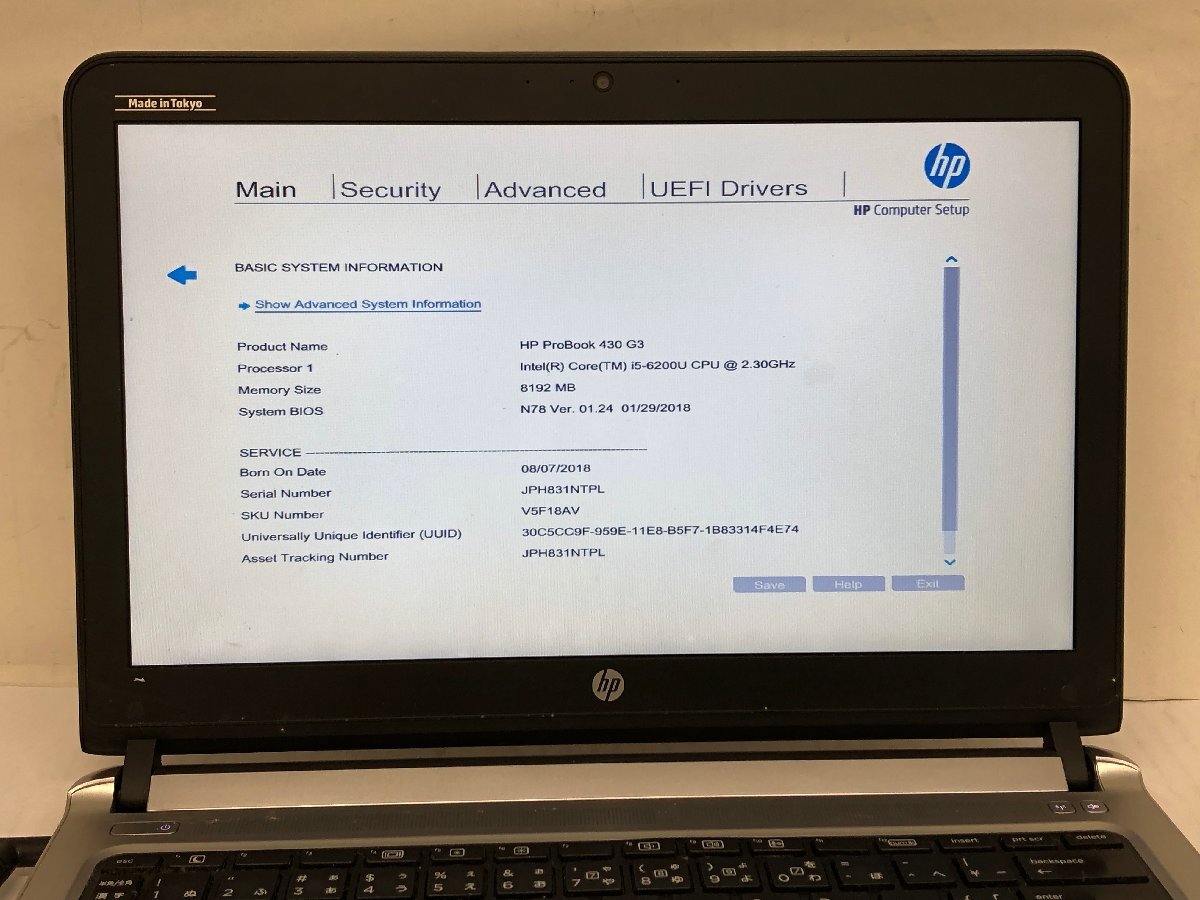 ジャンク/ HP HP ProBook 430 G3 Intel Core i5-6200U メモリ8.19GB ストレージ無し 【K23509】