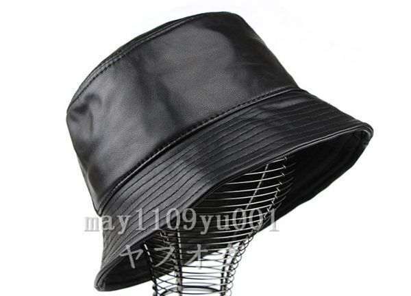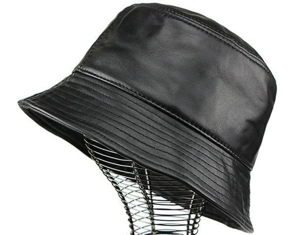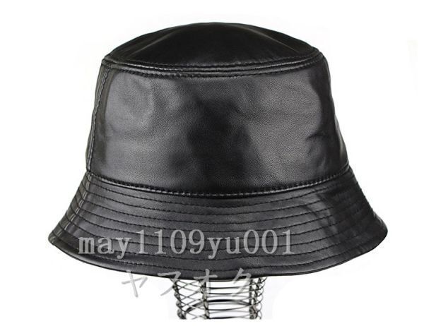 本革 バケットハット メンズ レディース リアルレザー 男女兼用 秋冬 帽子 プレゼント アウトドア ブラック XL 頭周り58~61cm [色 選択可]