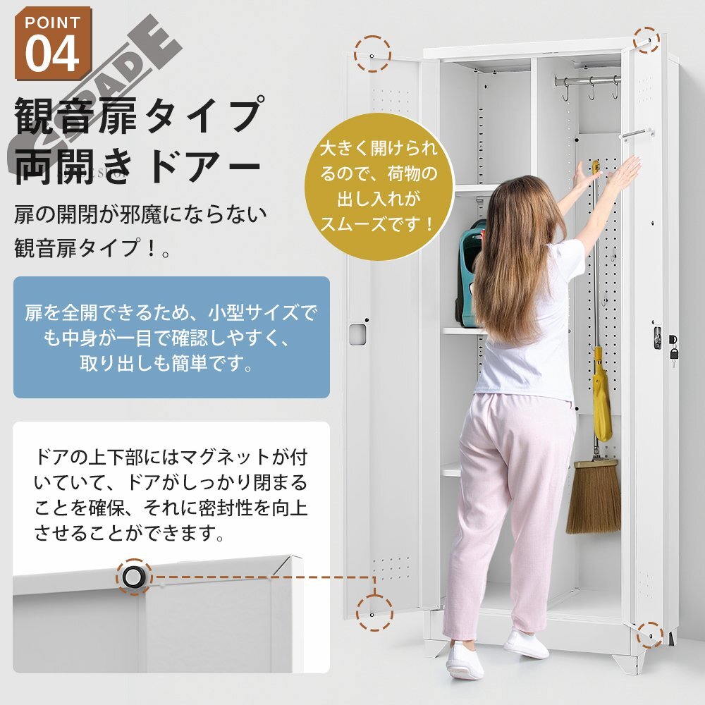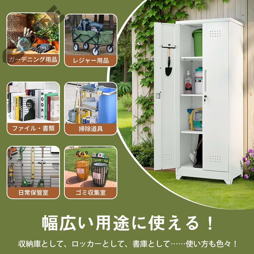 • 【四つ換気口が付き】ドアには高密度の通気孔があり、空気を循環させて、湿気やカビの発生を防ぎ、錆や損傷を防止します。それだけでなく、ほこりの侵入を効果的に防ぎ、保管品を清潔で乾燥した状態に保ちます。