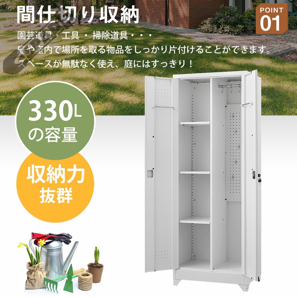 • 【間仕切り収納】330Lの容量収納力抜群園芸道具・工具 ・ 掃除道具・・・庭や室内で場所を取る物品をしっかり片付けることができます。スペースが無駄なく使え、庭にはすっきり!