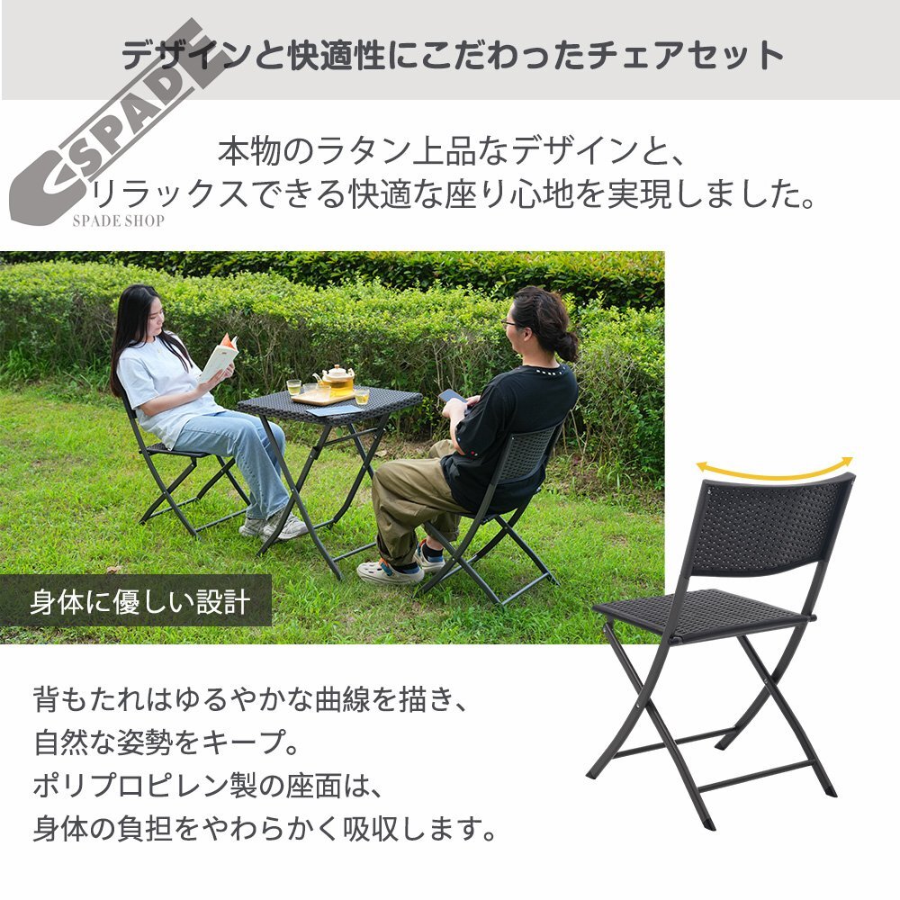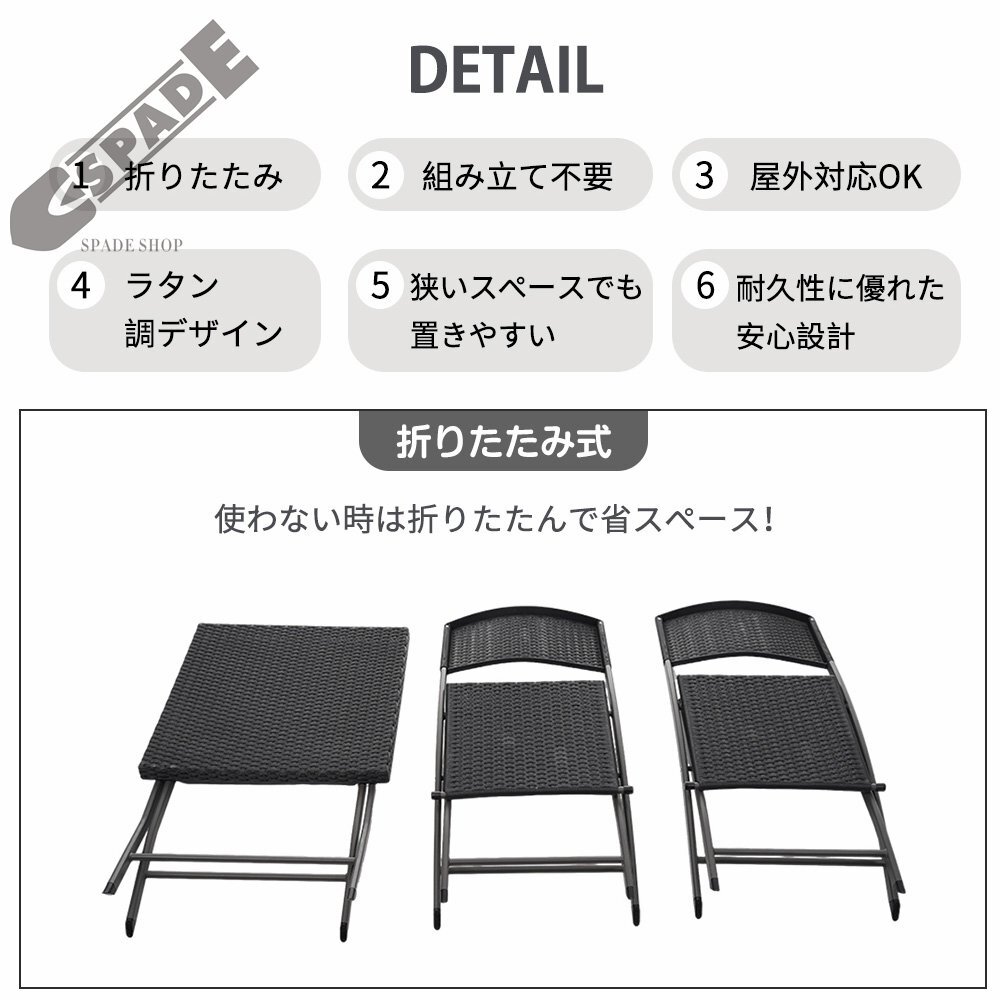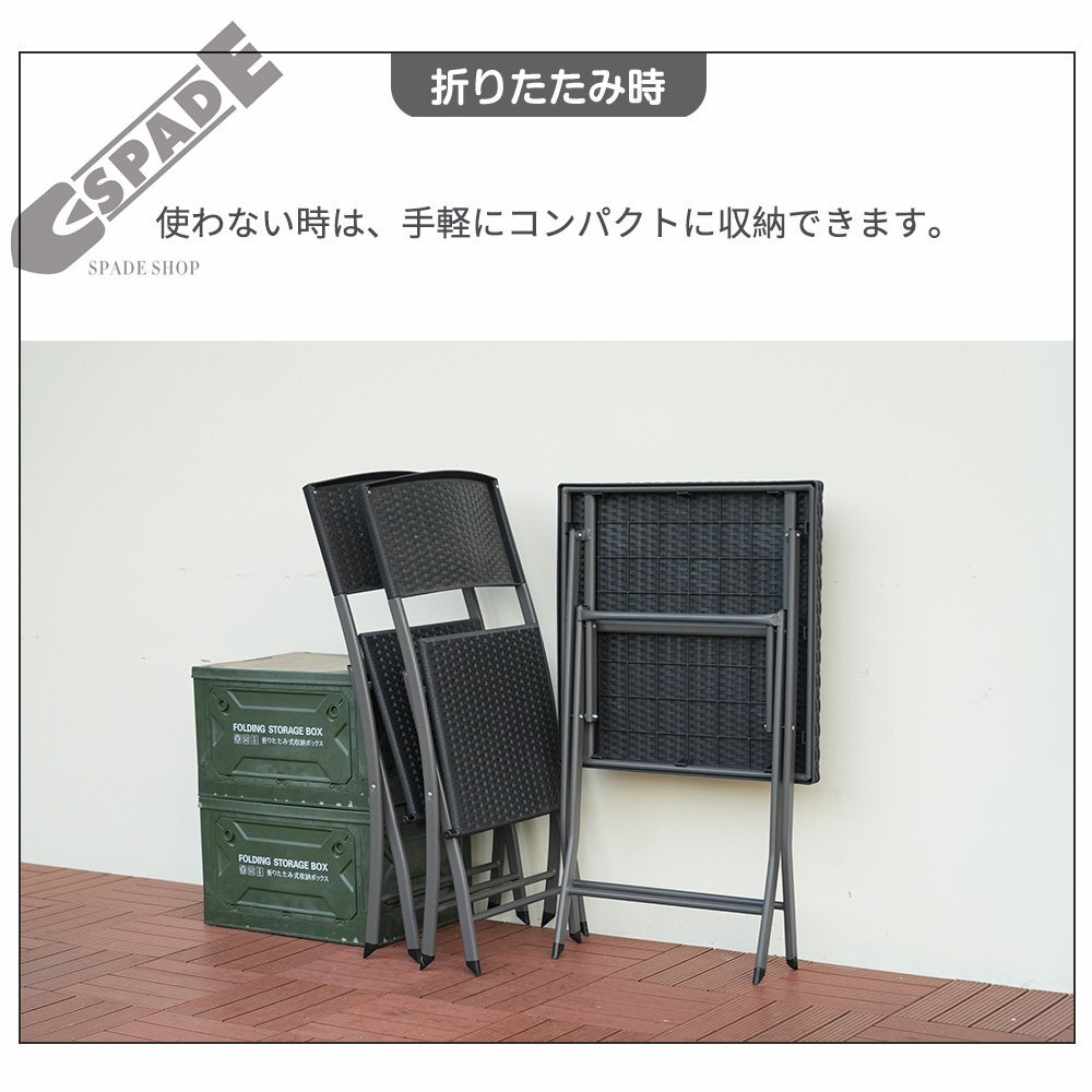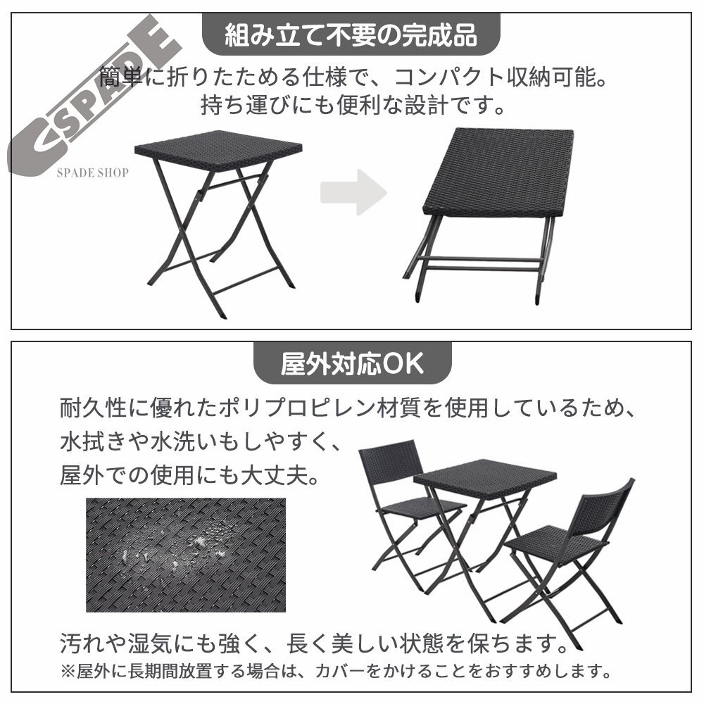 【国内発送】ガーデン テーブル セット 3点セット ラタン調 折りたたみ ガーデンファニチャー バルコニー アウトドア 屋外 省スペース コン