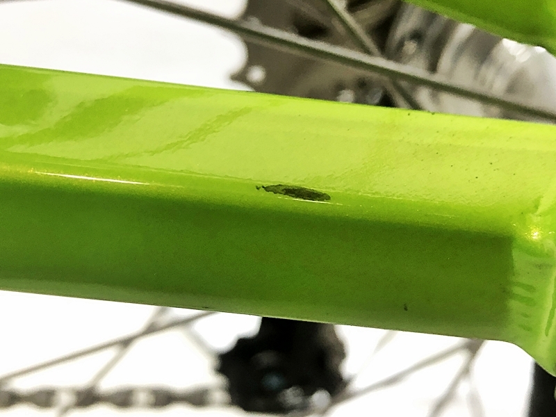 フレーム、その他外観:右シートステーに大きめの塗装欠けがあります。トップチューブ、左チェーンステー、ステム、フェンダー、リアキャリアステーに小キズがあります。キャリアローラーにスレキズがあります。トップチューブ、サドルに若干の汚れがあります。