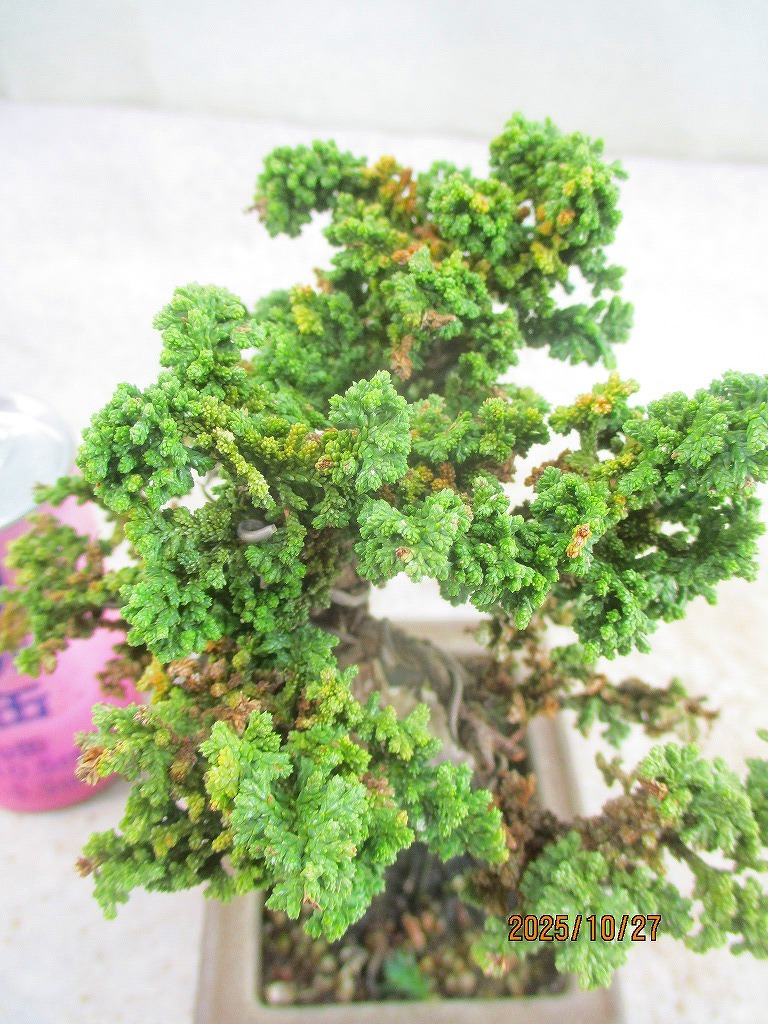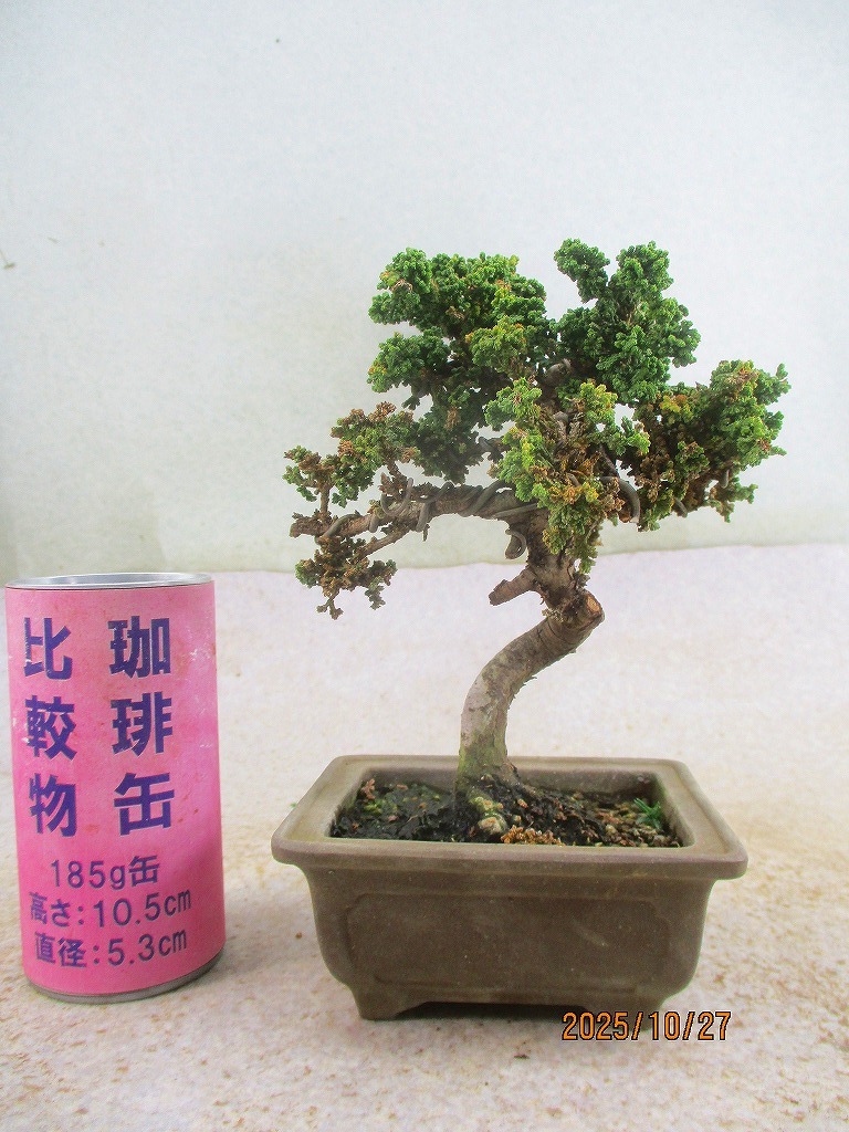[緑の市場] ミニ盆栽 石化桧(102443紫泥正方鉢)全高:20㎝【小型送料】*同梱包対応「まとめて取引」厳守*60サイズ送料明記 同梱包ご希望は「まとめて取引」でお手続きして下さい。 *同梱包は[緑の市場]のタイトルでの出品商品に限ります。類似画像で他IDの出品にご注意下さい。* 単品(セット品は1組)発送ご希望の際は「まとめて取引」の手続きをしないでください。入札前に必ず下記の「発送方法」に記載の送料を確認してください。 ヤフオクの取引においてメッセージは特に必要ありません。挨拶などを省略できる取引システムですし取引ナビの通知で進行状況が判るので都度の連絡(送金や受け取りのメッセージ)は不要です。配送日時指定や連絡事項のみお知らせください。双方合理的に進めましょう。また、お急ぎの方は入札をご遠慮ください。業務時間内での対応になります(土日祝休業)。 寸法は鉢を含む全高です。(樹高ではありません。) 一緒に撮影しているスケールまたは比較物をご参照ください。 飲料缶は高さ約10㎝、直径約5㎝です。 500mlペットボトルは高さ約21㎝です。 ■画像の様子から経時変化しますので撮影日(画像記載)からの変化はご了承下さい。 *花物・実物は特にご注意下さい。 画像(撮影時)では開花品でも、お届け時は花終わりを想定して下さい。 ◎落札が無い場合は、自動再出品が継続されます。 撮影から2か月経過した場合、どんどん開始価格が下がりますが、商品の劣化も進みますので、 撮影日からの期間経過品はある程度の劣化を想定で入札にご参加下さい。 商品により90日間程度(物によりそれ以上)同じ画像を使用しますので、必ず撮影日をご確認下さい。 |
