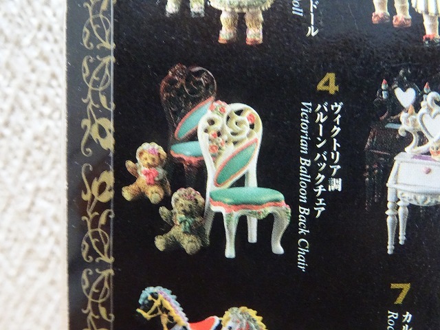 ミニチュアアンティークミュージアム  全16種+シークレット(ビスケットを食べる少女) 合計17種があります。この内の 「ヴィクトリア調バルーンバックチェア」Bの出品です。